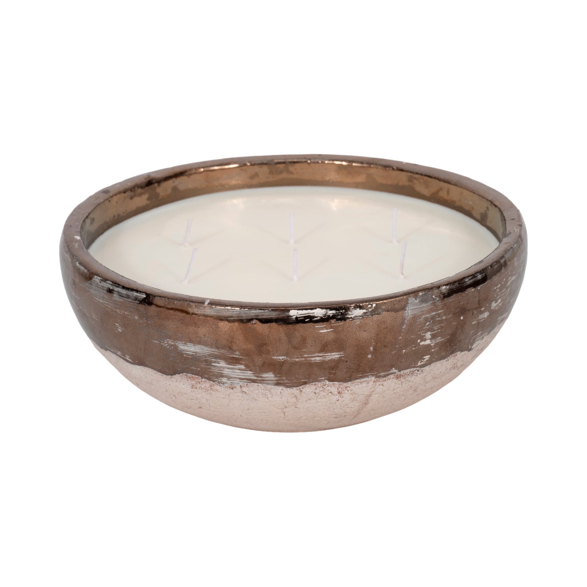 12" 57 Oz Pine Bowl Candle, Grey/gold