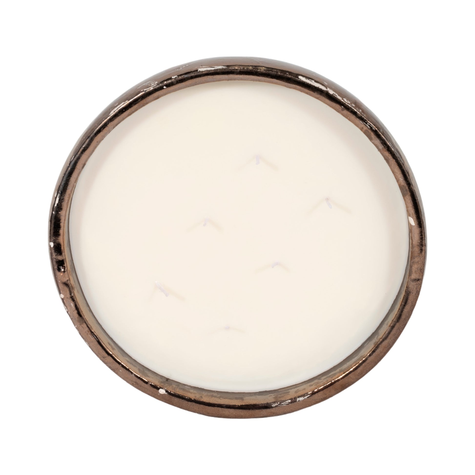 شمعة على شكل وعاء من خشب الصنوبر مقاس 12 بوصة، سعة 57 أونصة، باللون الرمادي/الذهبي