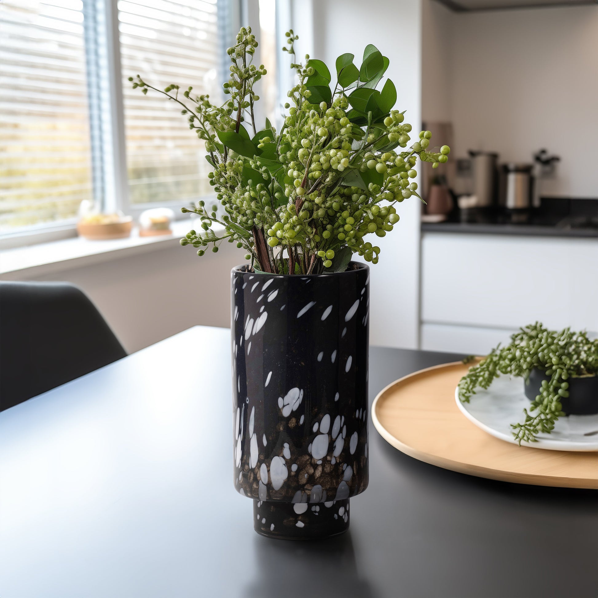 13" Hennie Large Black & White Glass Vase