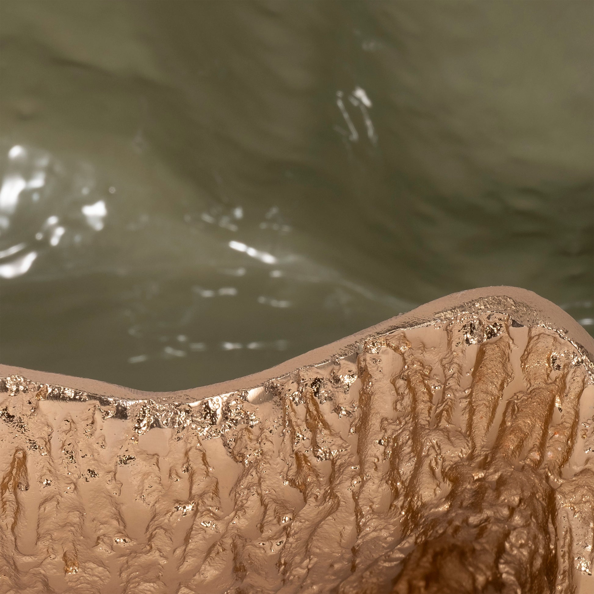 13" Metal Trunk Bowl With Color Inside, Gold/green