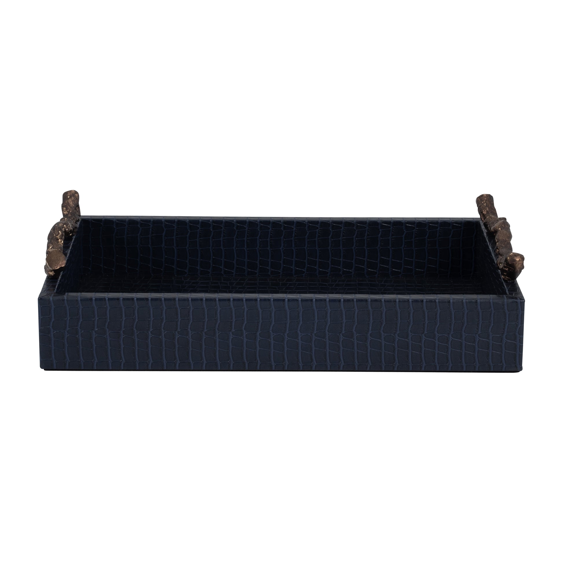 18149 FAUX LEATHER, S/2 16/18" 5TH AVE TRAYS, GREEN/GOLD( Sagebrook Home )