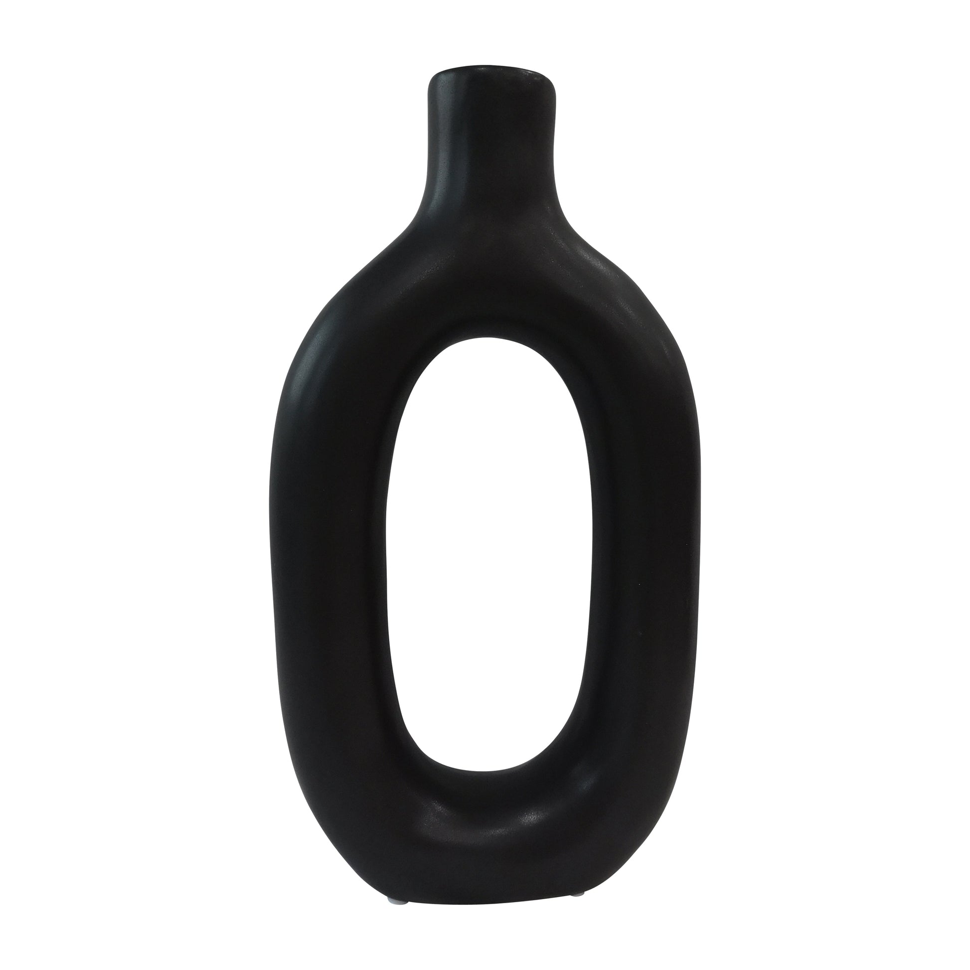 CER, 9" TEXTURED CUT-OUT VASE, BLACK