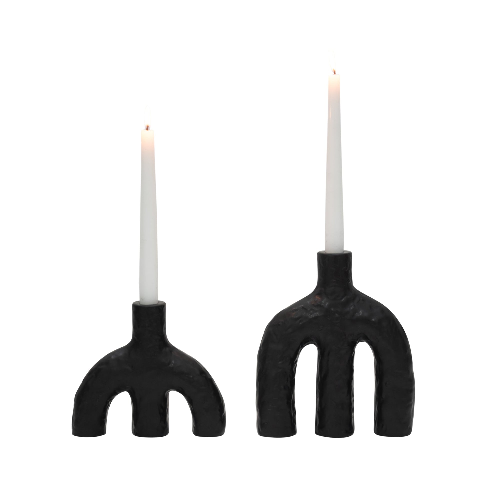 7" Volcano Texture Double Arched Taper Holder, Bla