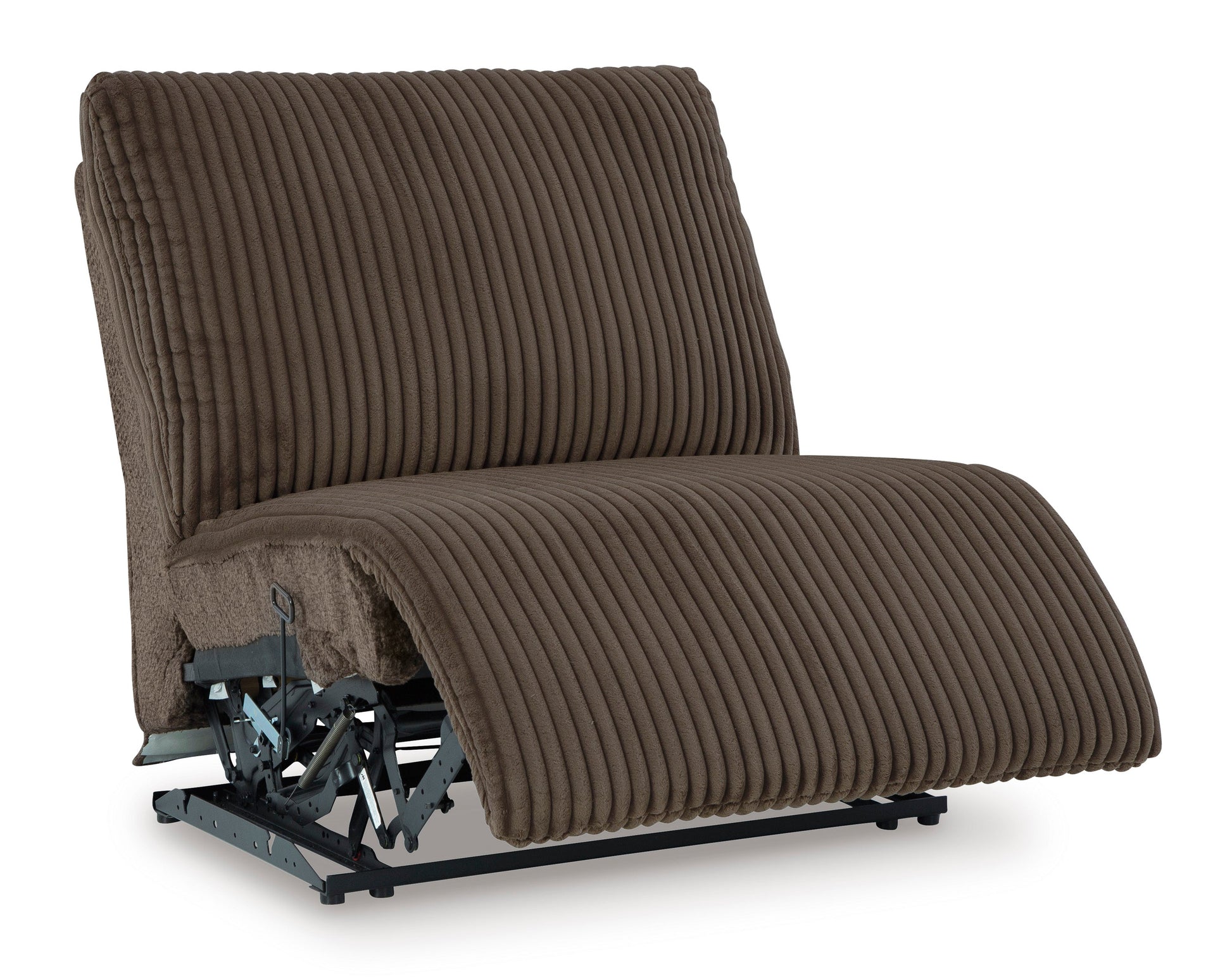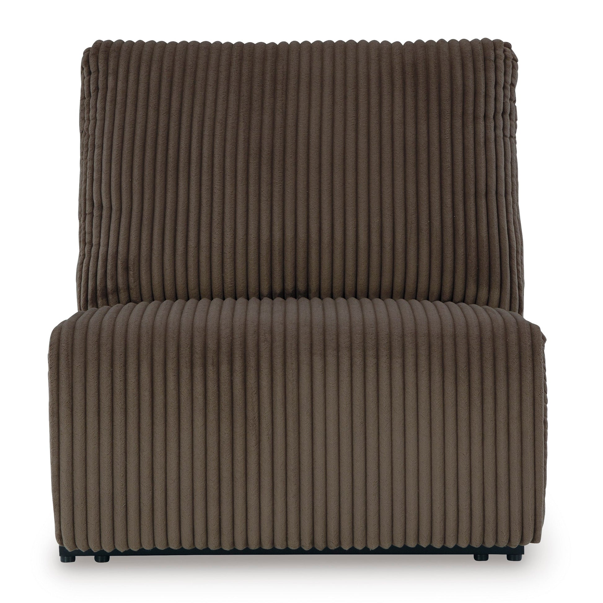 This armless recliner is made with polyester upholstery. Pairs with other items in the series to make a sectional.