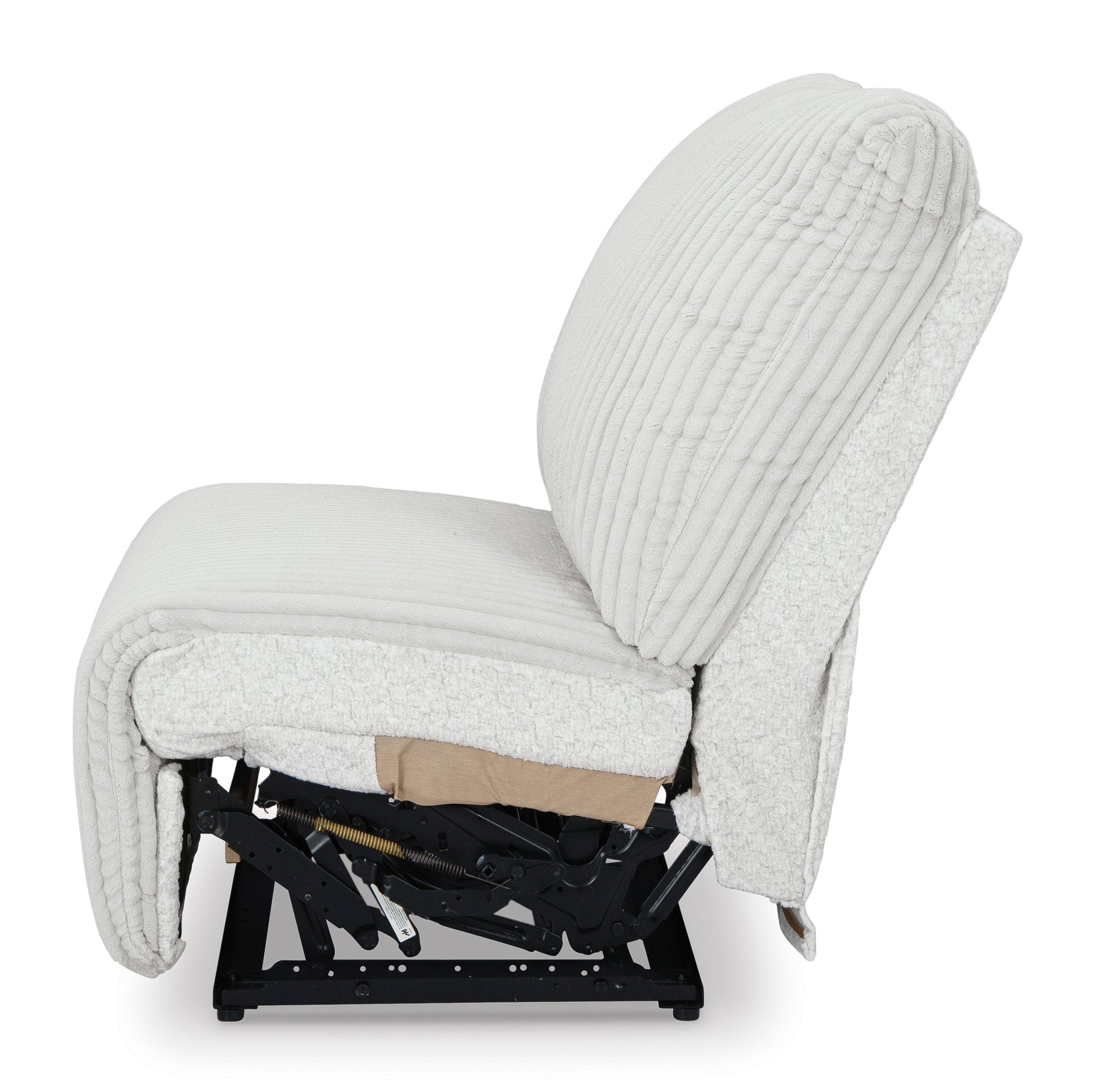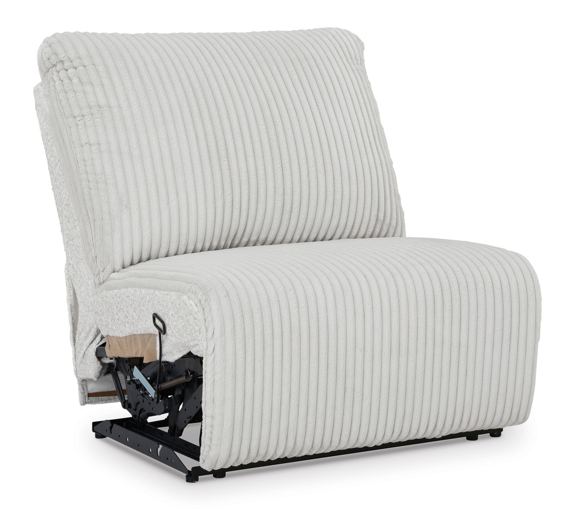 Details & OverviewThis armless recliner is made with polyester upholstery. Pairs with other items in the series to make a sectional.
