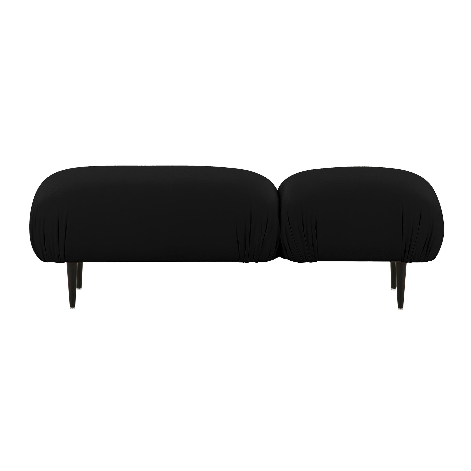 The postmodern overstuffed look is here to stay! The Adalynn bench is a welcome new arrival featuring ultra plush cushions and a delightfully intentional off-centered detail. The black legs offer a sharp juxtaposing element to the fun frame. Available in white or black vegan leather.