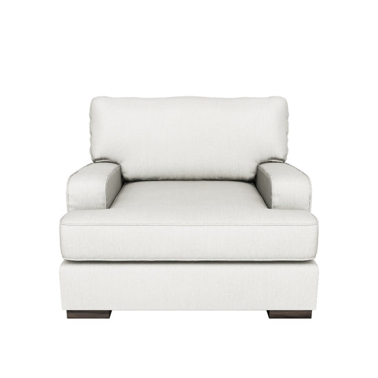 Decidedly modern with a sense of relaxed ease, the Alesandra oversized chair looks at home in so many different places and spaces. Providing a highly distinctive look: substantial track arms with curved cornering, wrapped t-cushioning and low-to-the-floor block feet in a warm wood-tone finish. Sporting a subtle chevron texture, the parchment-tone upholstery takes neutral to new heights.