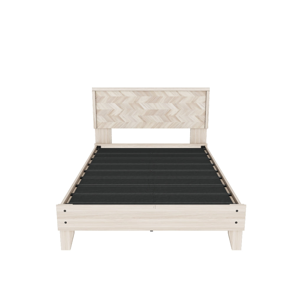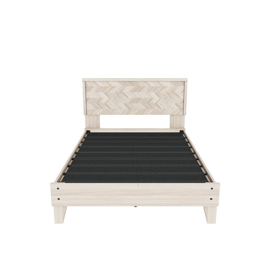 Transform your bedroom into an instant sanctuary. The Battelle full panel platform bed supports your mattress without needing a foundation or box spring. Pairing the look of oak grain with a unique chevron pattern, it introduces a touch of mid-century modern style that's sure to elevate your space.