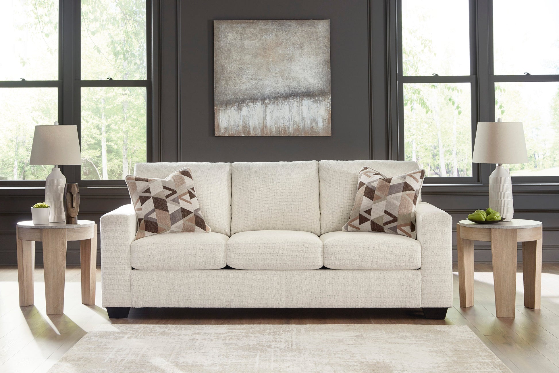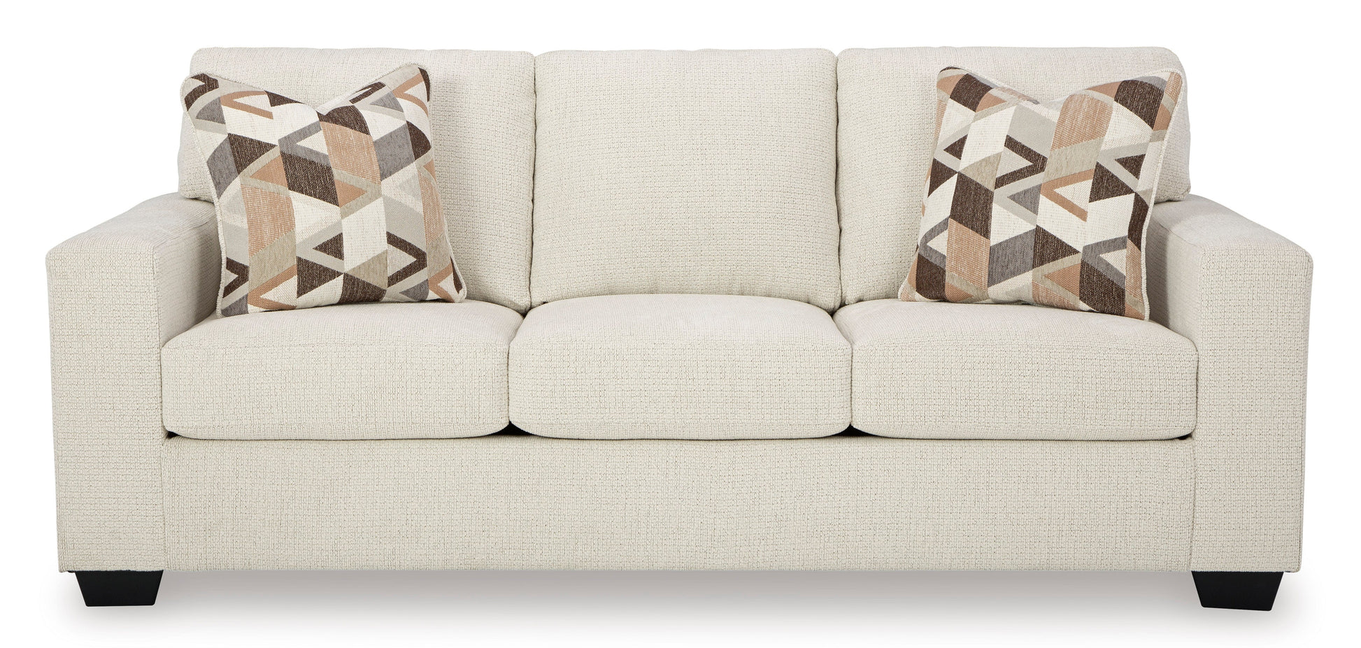 • What happens when contemporary design meets plush comfort? Introducing this striking sofa. Supple woven upholstery, ample cushioning and track arms deliver a chic modern vibe, making it the best seat in the house. All that’s missing is you—and your besties.