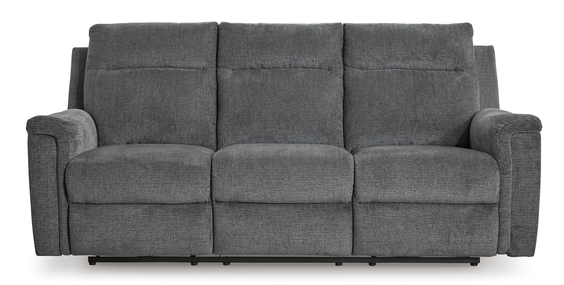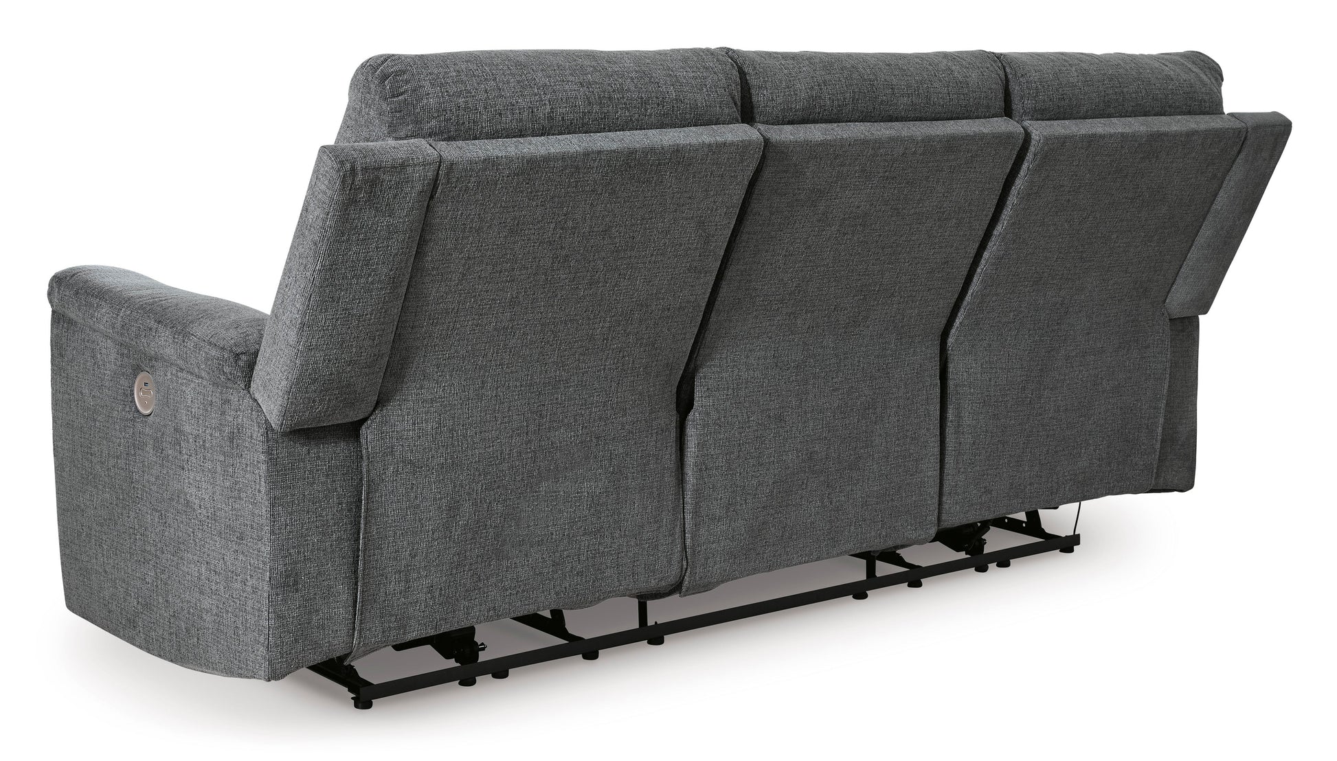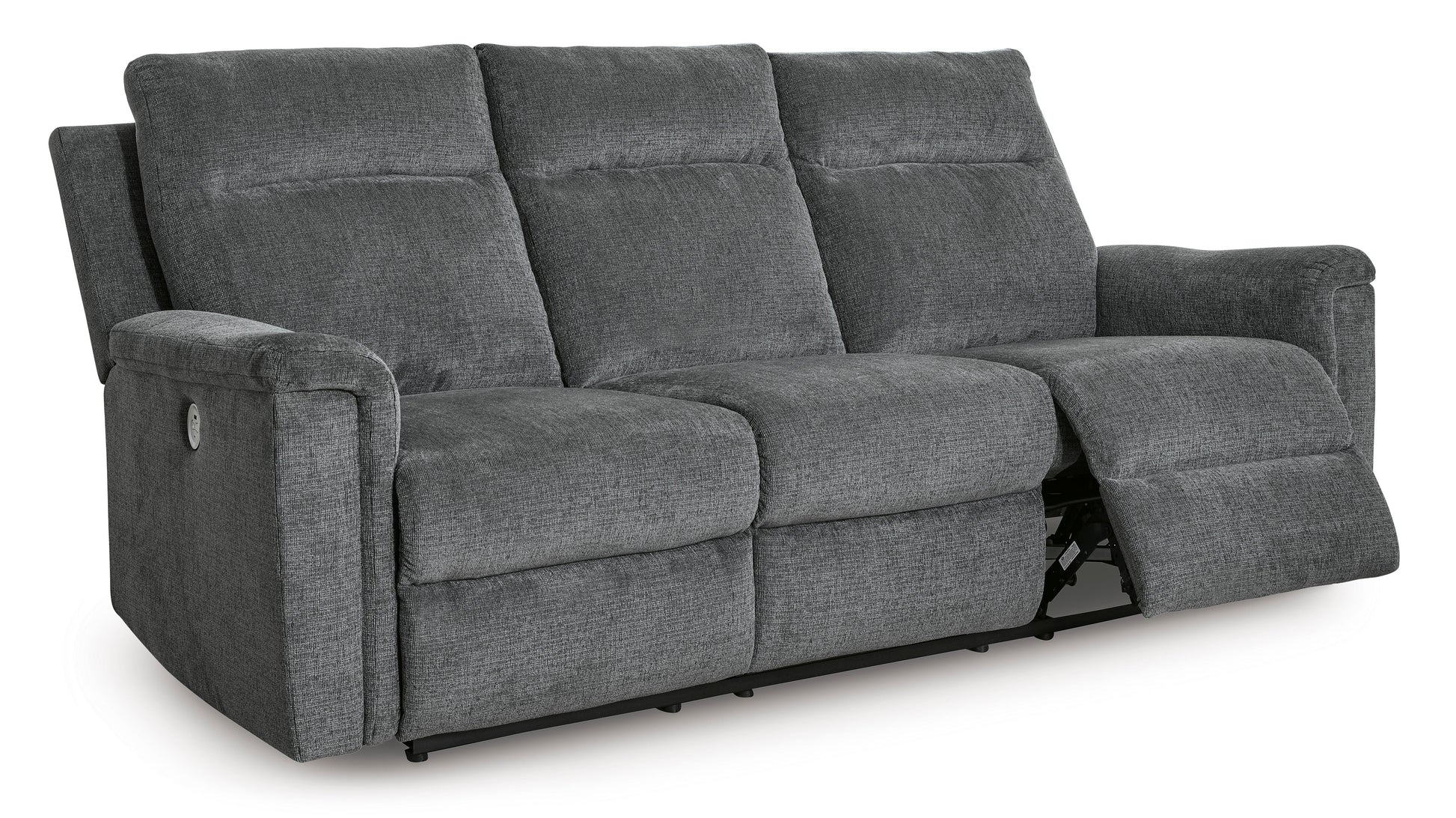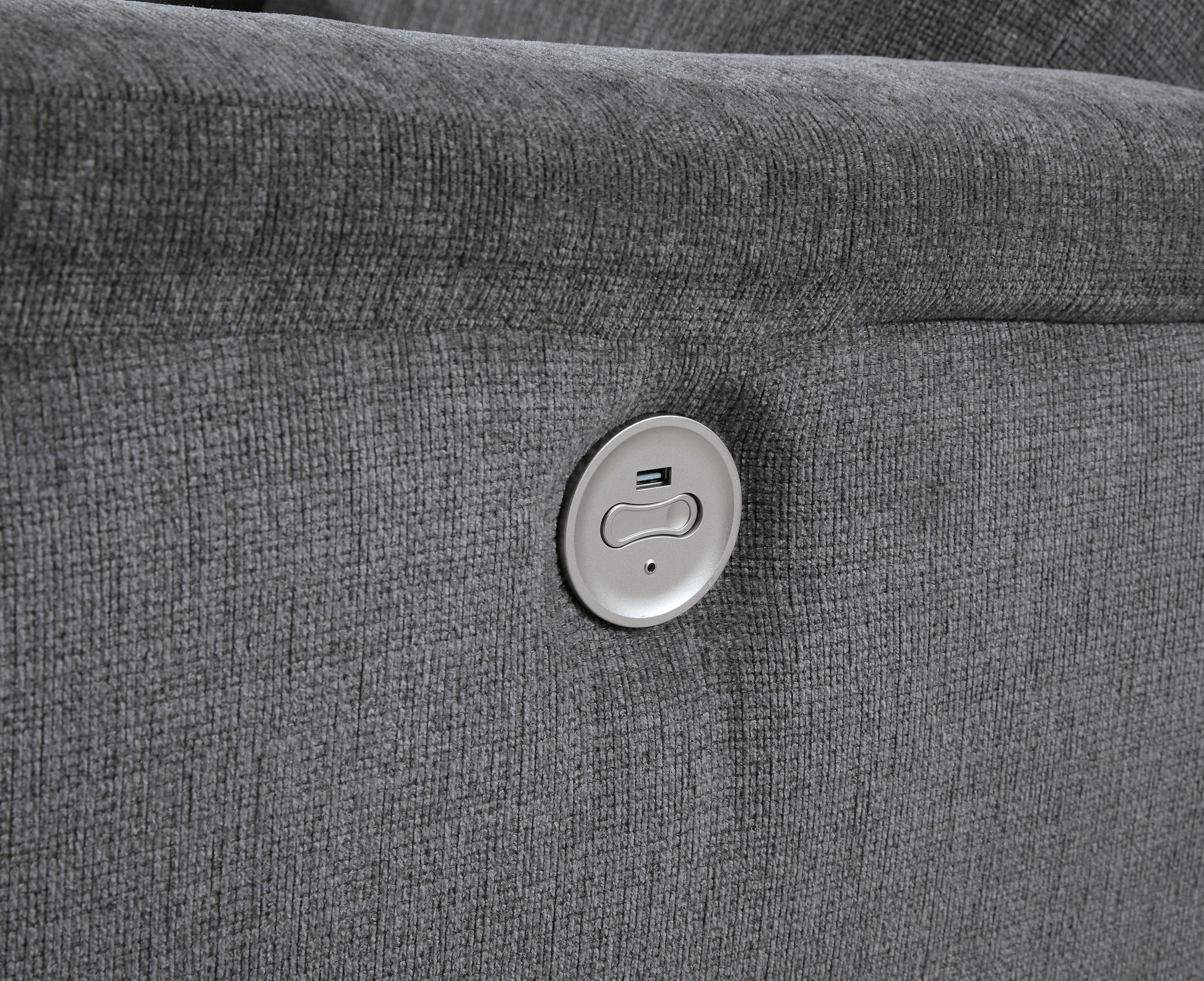 Fabric, Reclining Power Sofa, Light, Dual-sided recliner; middle seat remains stationary;One-touch power control with adjustable positions and zero-draw USB port;Zero-draw technology only consumes power when the USB receptacle is in use;Corner-blocked frame with metal reinforced seat;Attached cushions;High-resiliency foam cushions wrapped in thick poly fiber;Polyester micro chenille upholstery;Power cord included; UL Listed