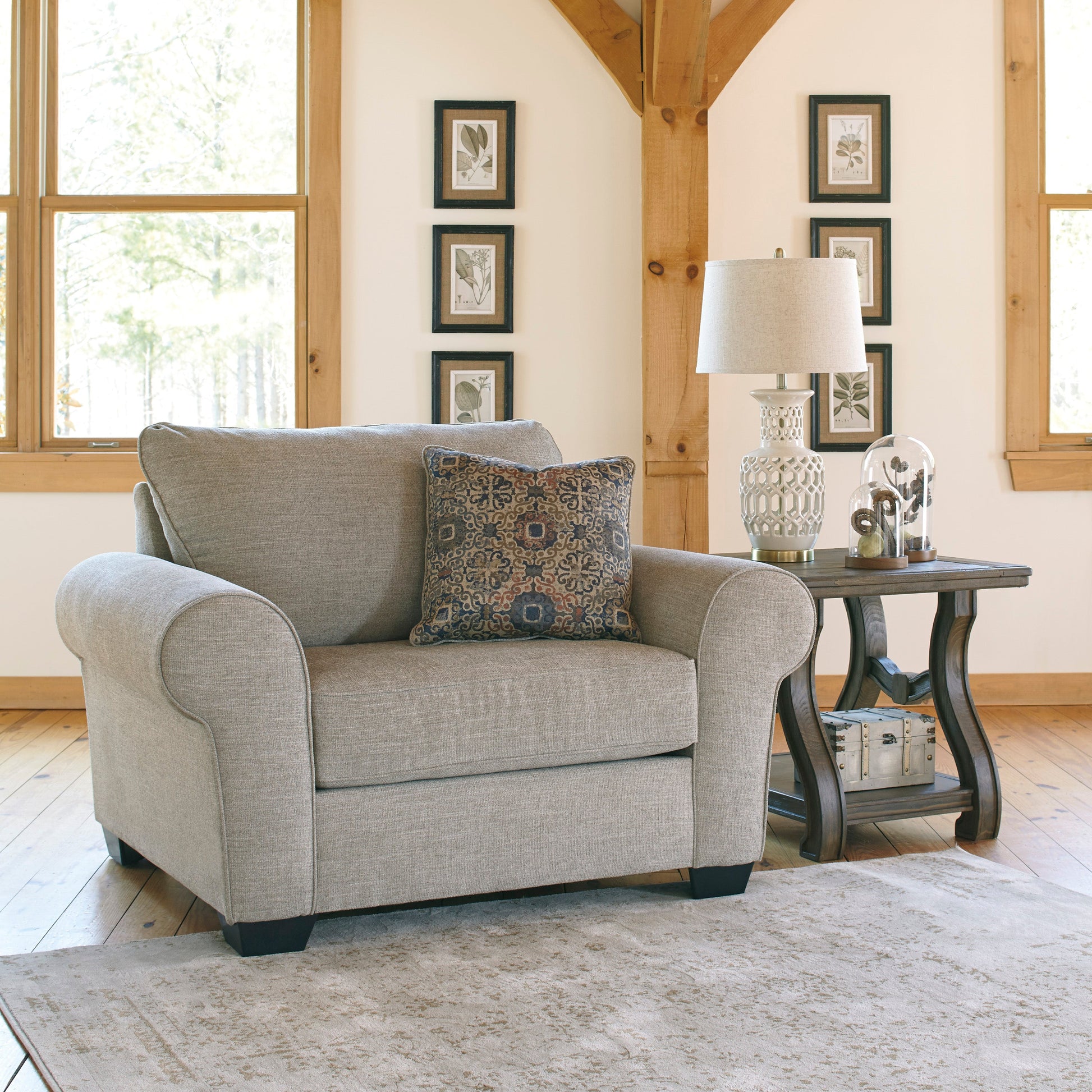 Corner-blocked frame;Attached back and loose seat cushions;High-resiliency foam cushions wrapped in thick poly fiber;Decorative pillow included;Polyester upholstery and pillow;Pillow with soft polyfill;Exposed feet with faux wood finish;Excluded from promotional discounts and coupons;Clearance item: all sales are final