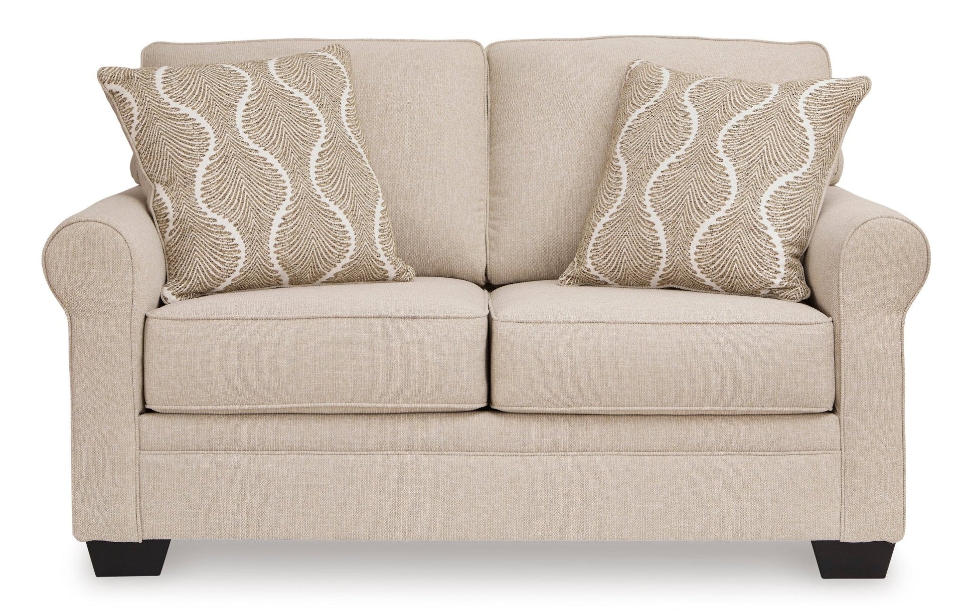 Includes oval cocktail table and 2 round end tables;Made of elm veneers and engineered wood;Textural grayish brown finish;Bridge truss base with thin-line aesthetic