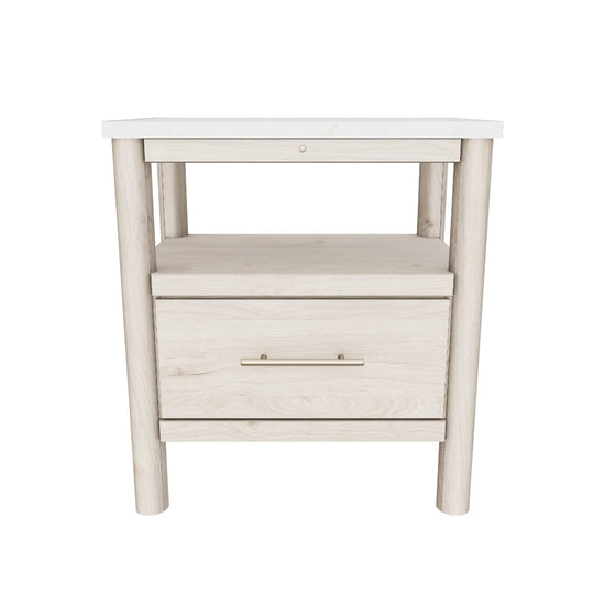 Transform your bedroom with the Cadmori nightstand. With its clean lines and replicated marble top, it exudes a minimal and sophisticated boho style. Built-in lighting and charging capabilities add simplicity and ease to your everyday tasks. Tailor your space and create the perfect environment for sweet dreams.