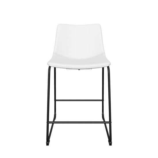 Upholstered Barstool (2/CN),,Tubular metal base;Bucket seat;White faux leather upholstery;Assembly required