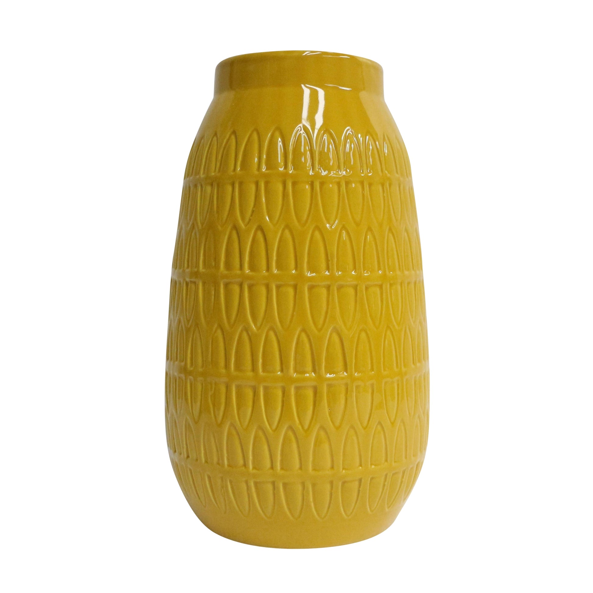 CER, 12"H CARVED VASE, MUSTARD GOLD