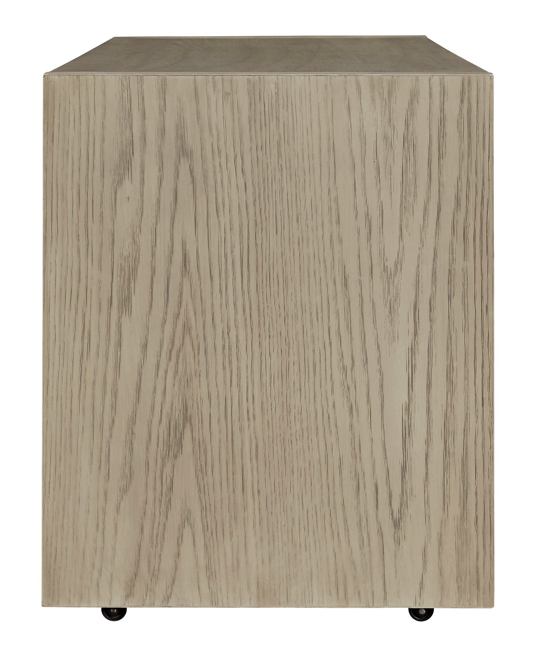 Made of oak veneer and engineered wood;Warm gray finish;Wheels under sides for mobility;Assembly required