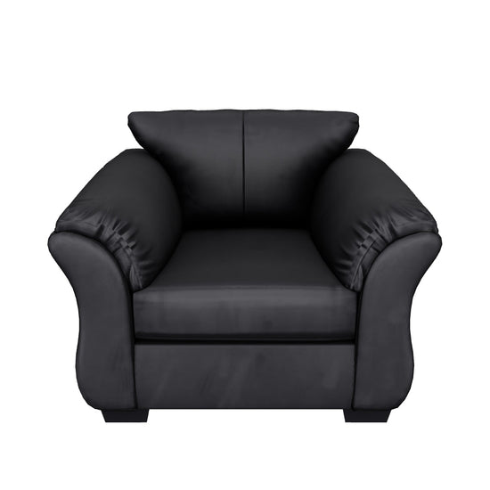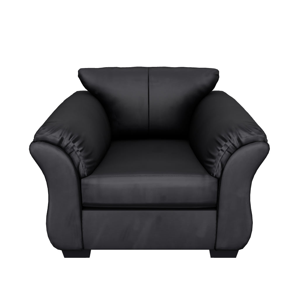 Talk about fine lines and great curves. That’s the beauty of the Darcy chair—made to suit your appreciation for simplicity and love of contemporary style. A striking flared frame, comfy pillow top armrests and an ultra-soft upholstery that holds up to everyday living complete this fashion statement.