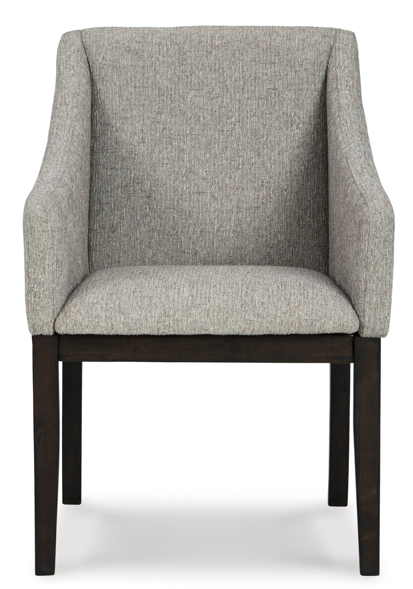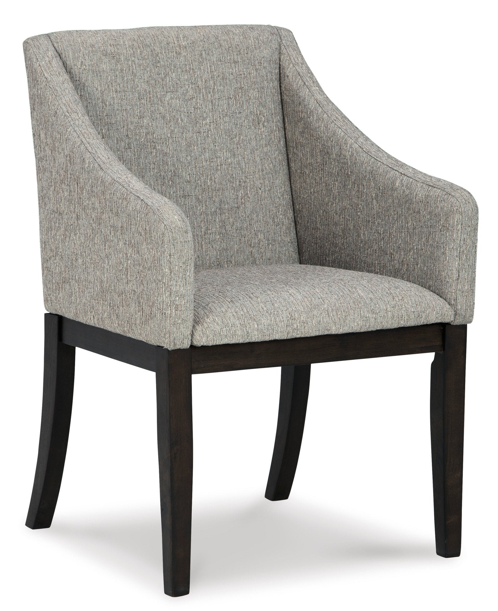مصنوع من الخشب؛ تنجيد من البوليستر الرمادي المنسوج؛ مقعد وظهر وذراعان مبطنة بالإسفنج؛ يتطلب التجميع