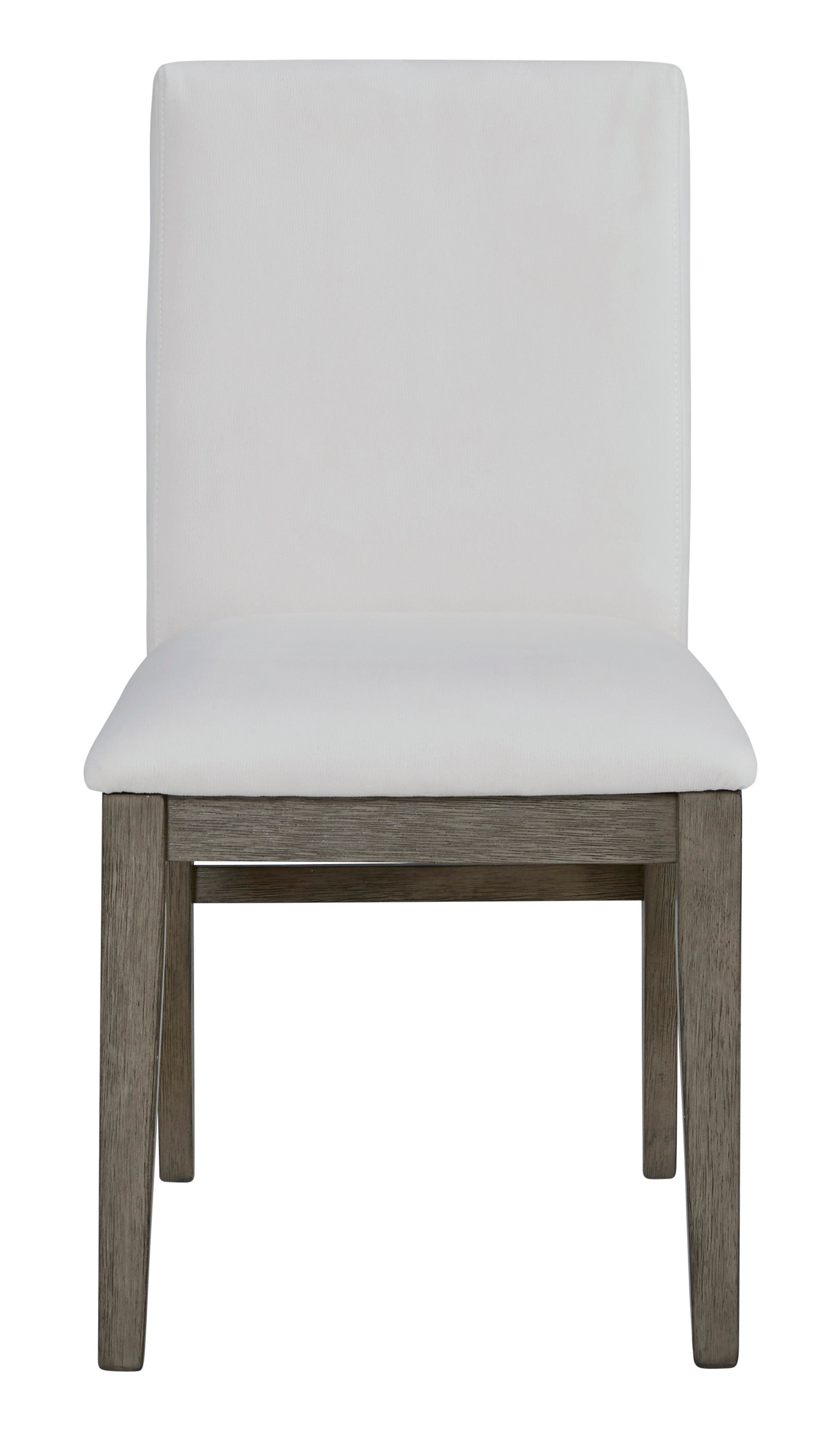 Details & OverviewA beautiful balancing act. Clean lined and simply striking, the Anibecca upholstered side chair merges a high-style look with a side of easygoing attitude. Wowing with visual texture, the fabulous faux leather seating is supported by a weathered gray wood frame. What a delicious choice for a casual contemporary dining room upgrade.