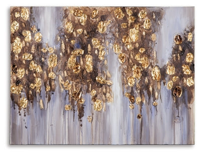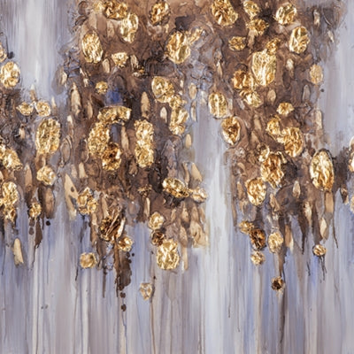 With the Donier wall art, you’ll find yourself in a room dripping with gold. Mastering gorgeous abstract expression, this canvas is covered in soft shades of blue. Gold leaf metallic embellishment adds dimension for a positively chic look you can’t beat.