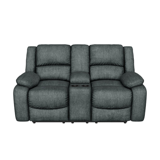 Dual-sided Recliners;One-touch power control with adjustable positions and zero-draw USB plug-in;Zero-draw technology only consumes power when the USB receptacle is in use;Corner-blocked frame with metal reinforced seat;Attached cushions;High-resiliency foam cushions wrapped in thick poly fiber;Polyester upholstery;Storage console with 2 cup holders;Power cord included; UL Listed,Power Reclining Loveseat with Console