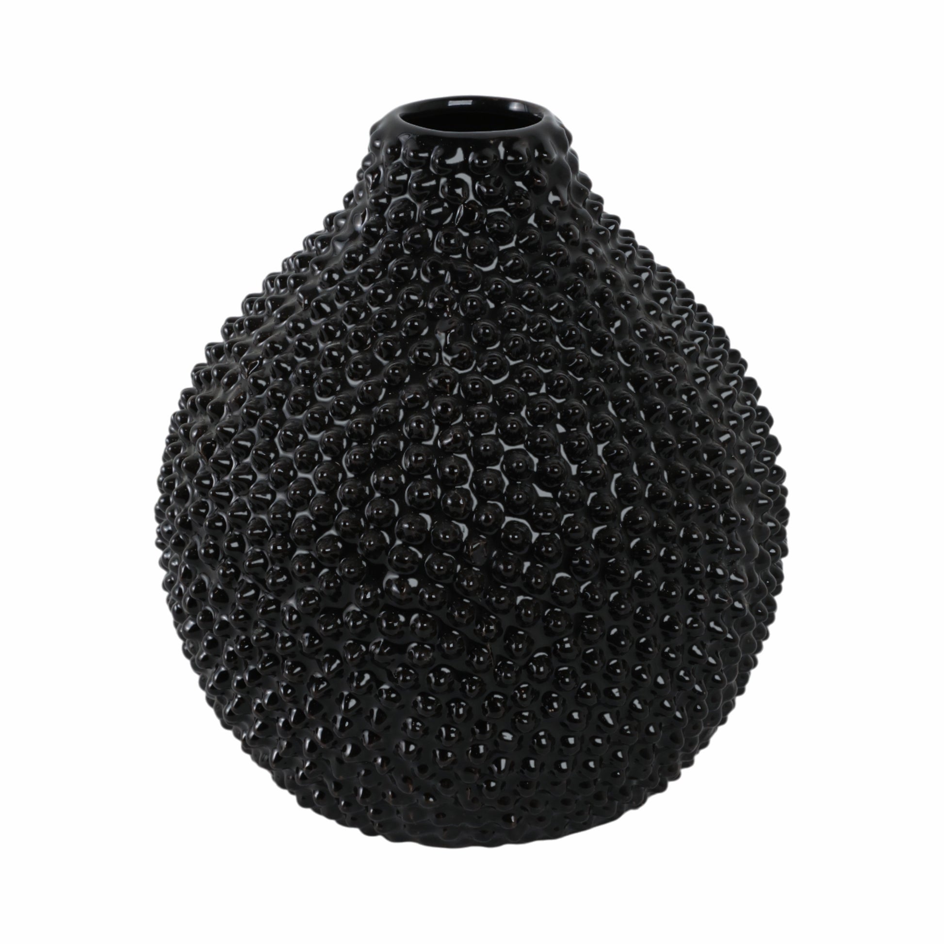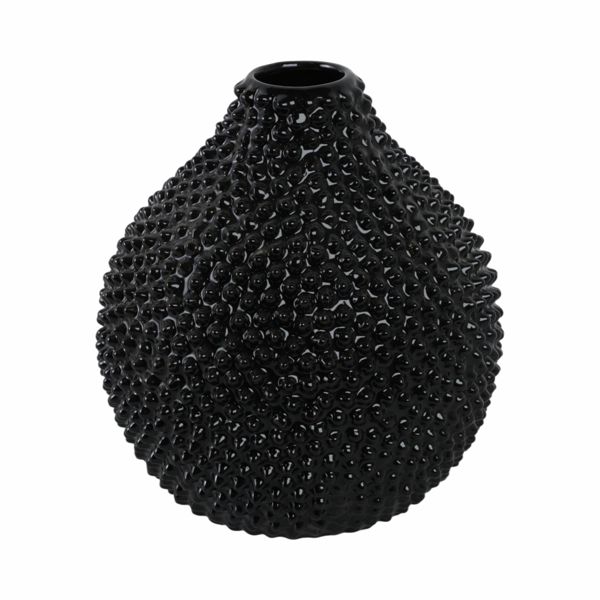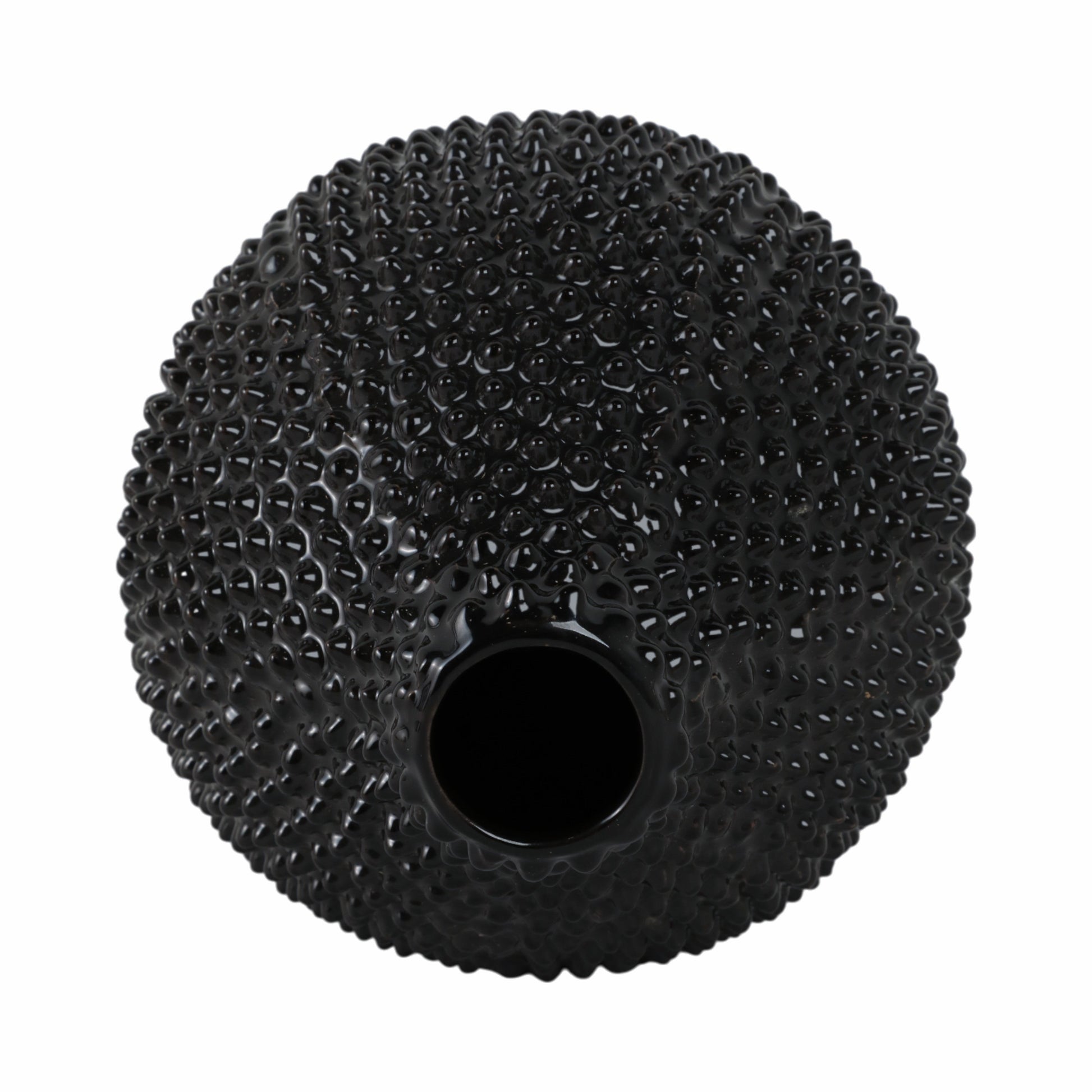 EC, GLOSS BLACK SPIKED CERAMIC VASE 8"