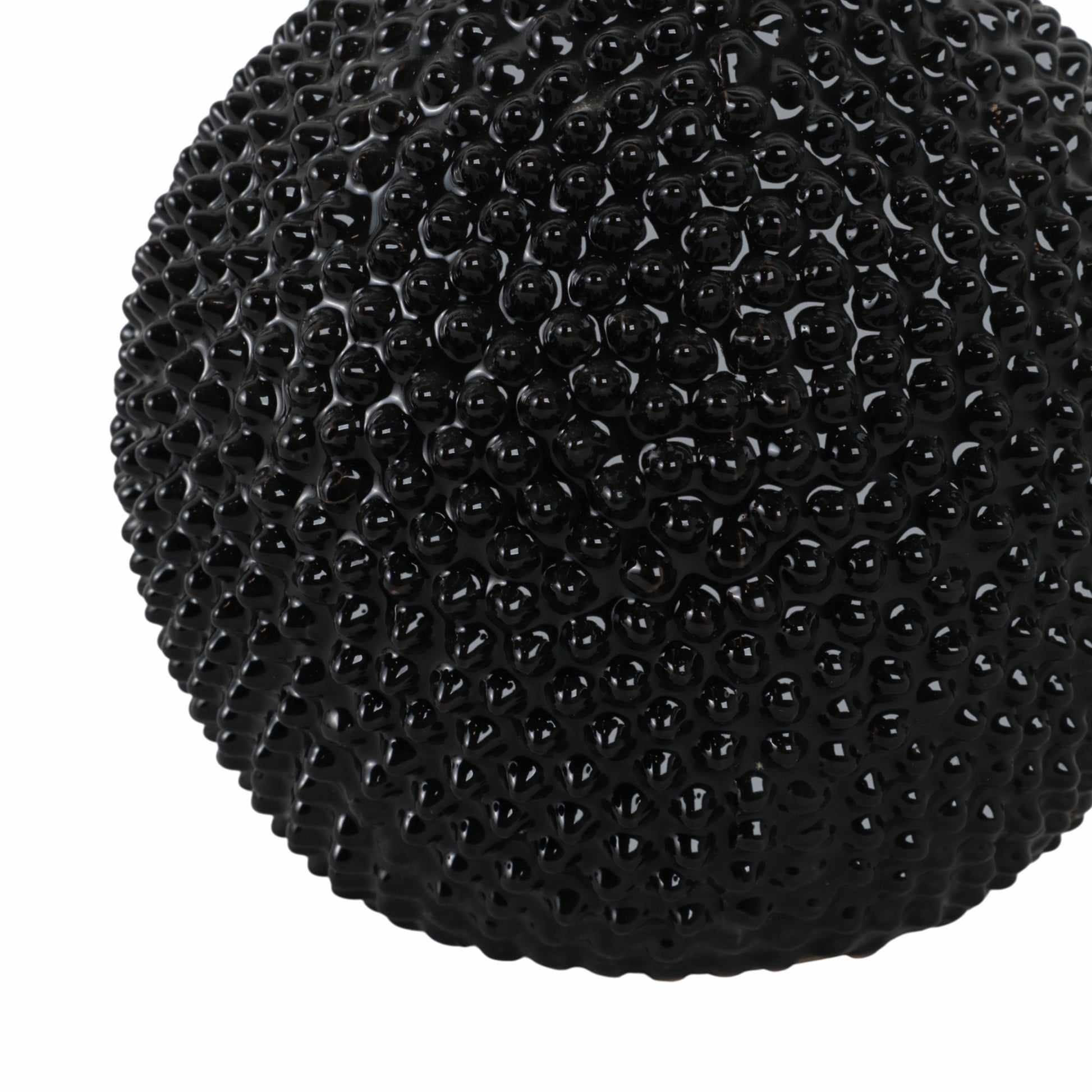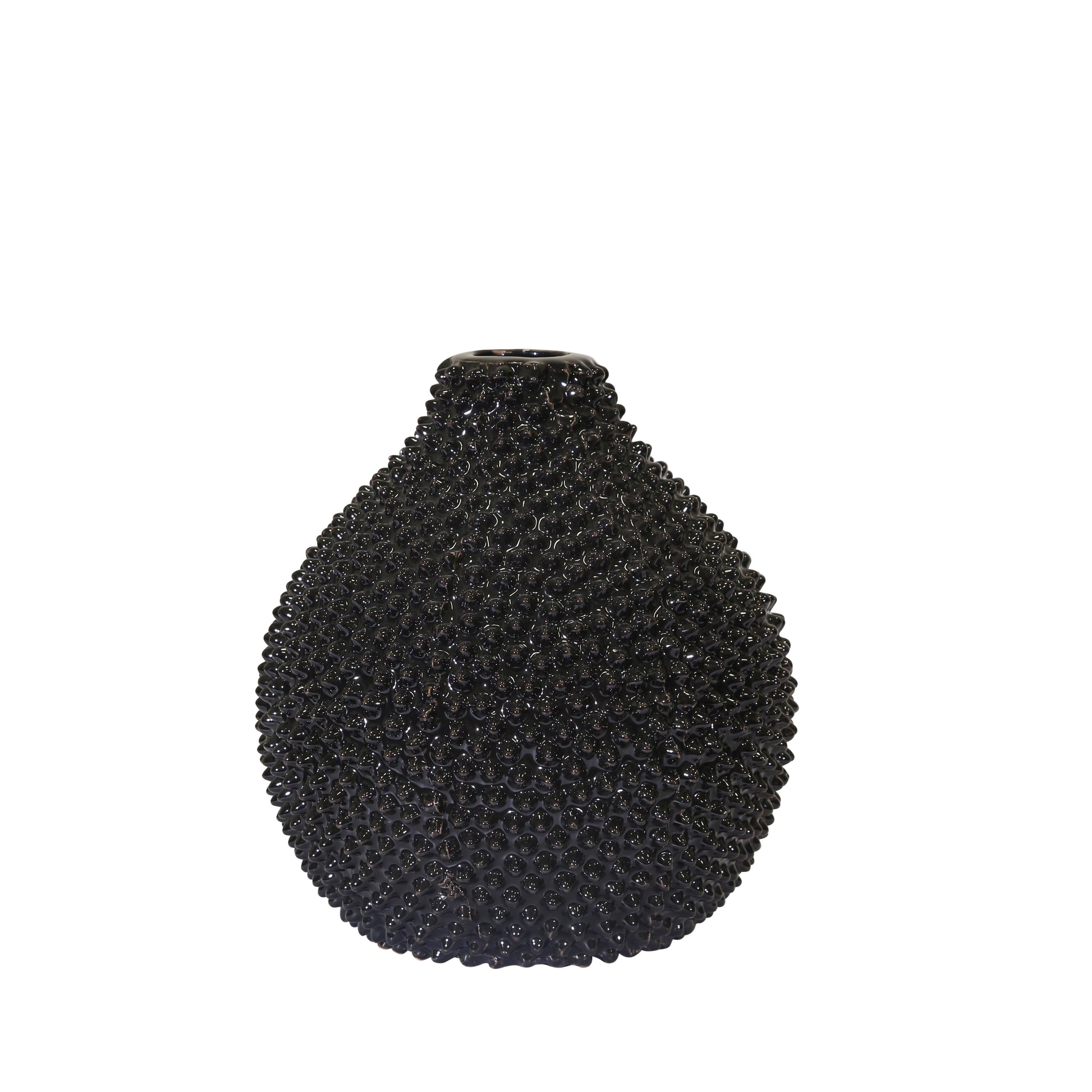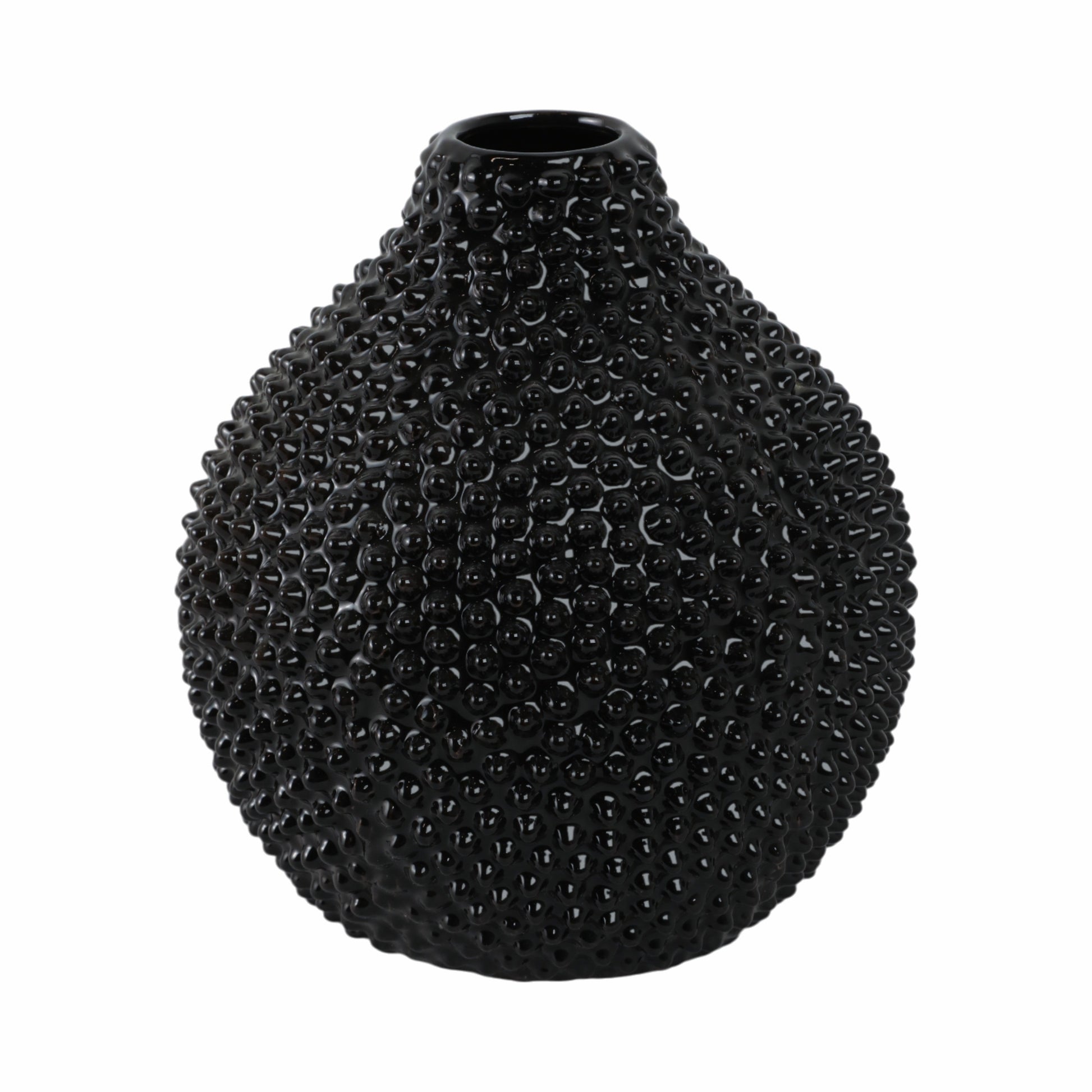 EC, GLOSS BLACK SPIKED CERAMIC VASE 8"