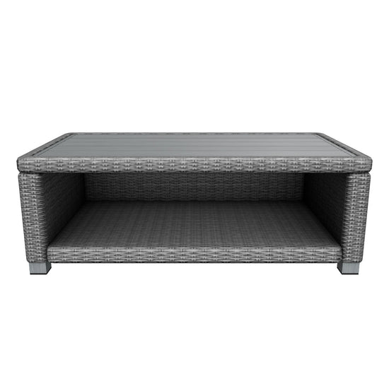 Add a distinguished touch of gray to your outdoor living space with the Elite Park coffee table. This head-turning table is made with resin wicker over an aluminum frame for a relaxed look that provides seasons of enjoyment. Its aluminum top combines the exceptional durability and weather resistance you need with the "wood look" finish you love.