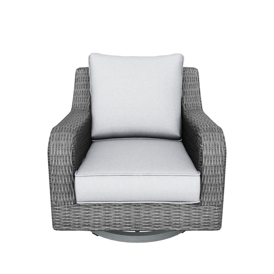 Add a distinguished touch of gray to your outdoor living space with the Elite Park swivel lounge chair. It's made with resin wicker over an aluminum frame for a relaxed look that provides seasons of enjoyment. Rest assured, the thick seat and back cushions are wrapped in our exclusive Nuvella® high-performance fabric that’s fade-resistant, stain-resistant and a breeze to clean.