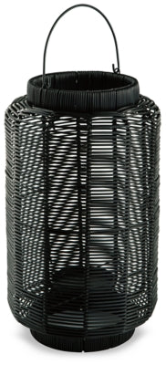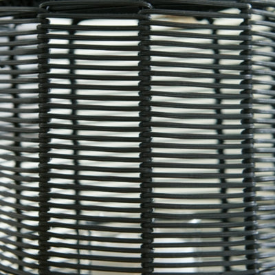 Complete the look of your restful retreat with the homey Evonne lantern. Its black faux rattan filters the light of your candle (not included) to give a gentle glow to your space. When not in use, this chic indoor/outdoor piece rounds out your decor with its versatile style.