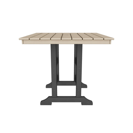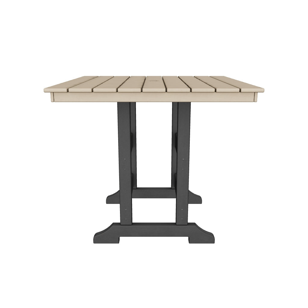 Raise the bar on outdoor living with the Fairen Trail 42" square dining table. Crafted for style, comfort and MEGA TUFF™ durability, it caters with a standout look that pairs tones of driftwood and black for twice the interest. The table's counter height design elevates the aesthetic. An umbrella hole lets you throw some shade on your outdoor living space.