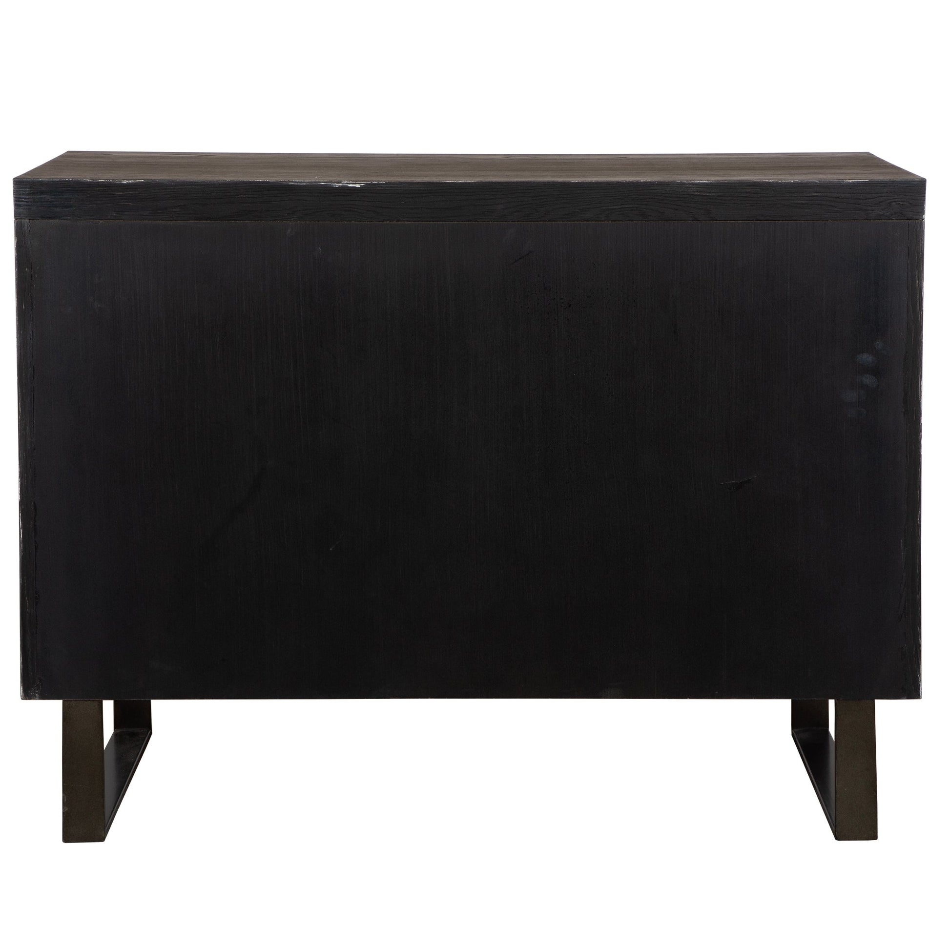 يتميز هذا الصندوق ذو الطراز المعاصر المصنوع من قشرة خشب البلوط الفاتح بأرجل حديدية برونزية داكنة مدمجة في واجهته الأمامية. وتُزيّن مقابض متناسقة الأدراج ذات الإغلاق الهادئ.