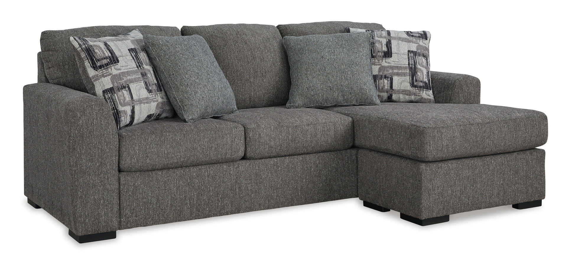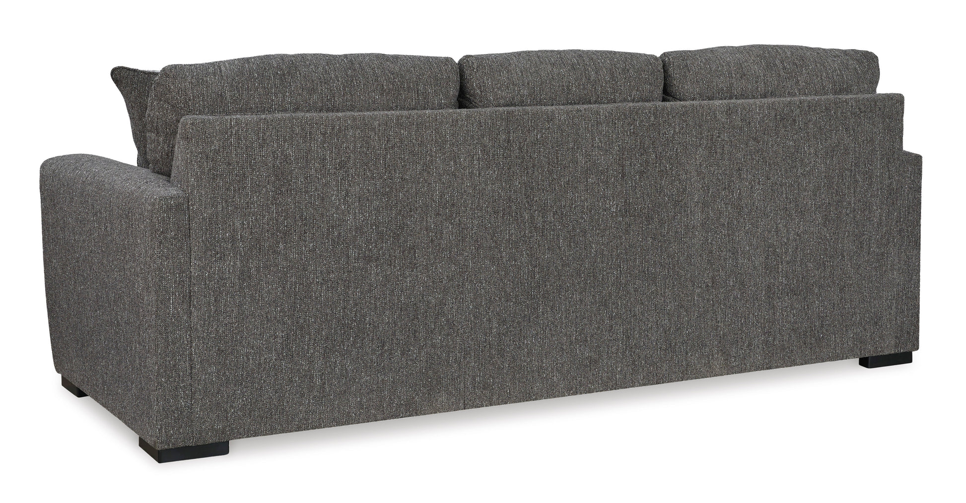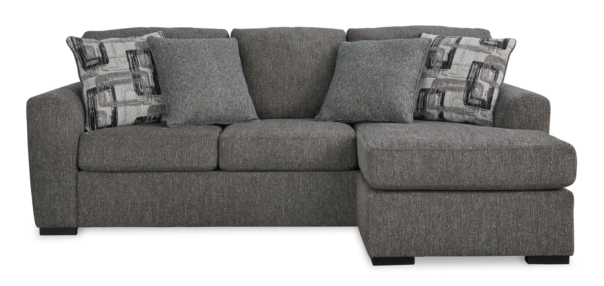 Corner-blocked frame;Attached back and reversible seat cushions;High-resiliency foam cushions wrapped in thick poly fiber;Accent pillows included;Pillows with soft polyfill;Polyester upholstery;Exposed feet with faux wood finish;Platform foundation system resists sagging 3x better than spring system after 20,000 testing cycles by providing more even support;Smooth platform foundation maintains tight, wrinkle-free look without dips or sags that can occur over time with sinuous spring foundations
