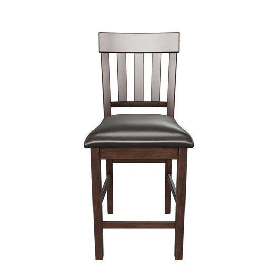 Made of veneers, wood and engineered wood;Vinyl upholstery;Cushioned seat;Slat back design