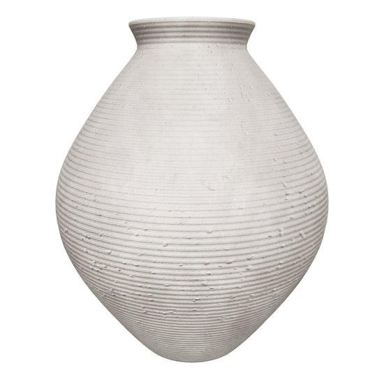 Ribbed textural rings give the Hannela vase a wonderful artisanal quality. An antiqued tan finish catches the eye, drawing attention to this elegantly fresh centerpiece.