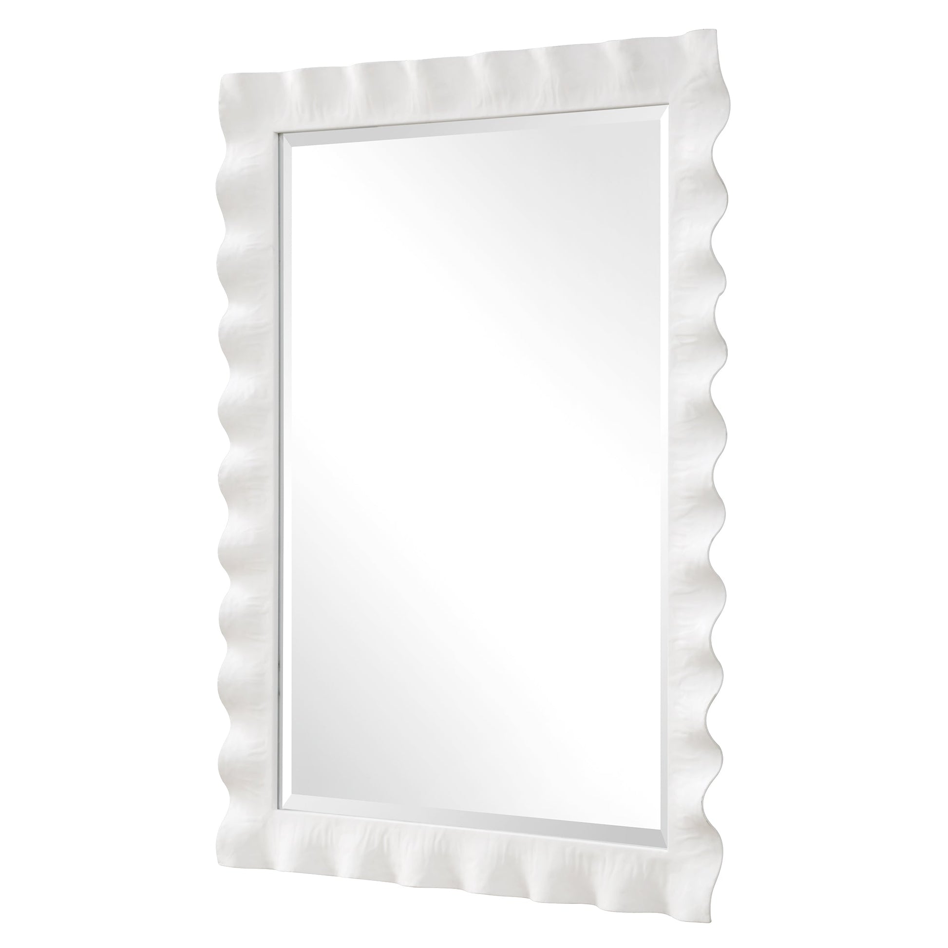 • This Mirror Features A Hand Forged Metal Frame Finished In A Semi-gloss White With An Organic, Scalloped Edge Design. A Generous 1" Bevel Is Added To This Piece, Which May Be Hung Horizontal Or Vertical.