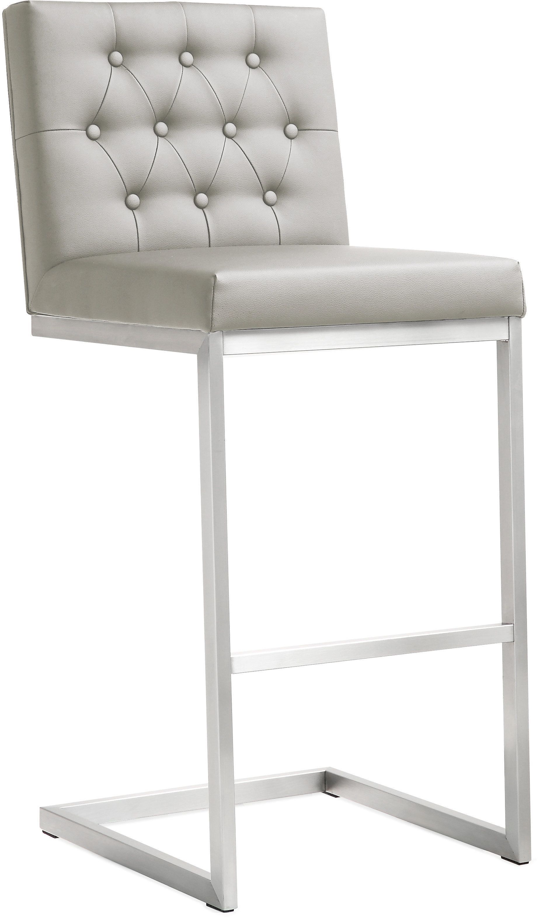 Color: Light Grey Leg Details: Stainless Steel Feature: CA117-2013 Fire Retardant Foam,Stainless steel frame and footrest,Button tufted back,Comfortable eco leather upholstered back and seat,Ships 2 per carton,For residential or commercial use,Available in multiple colors and counter or bar height options,Fabric swatch available, View More of Brand TOV