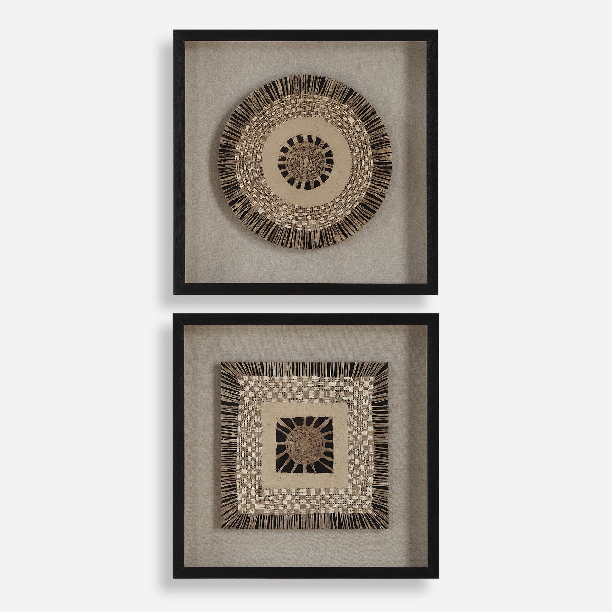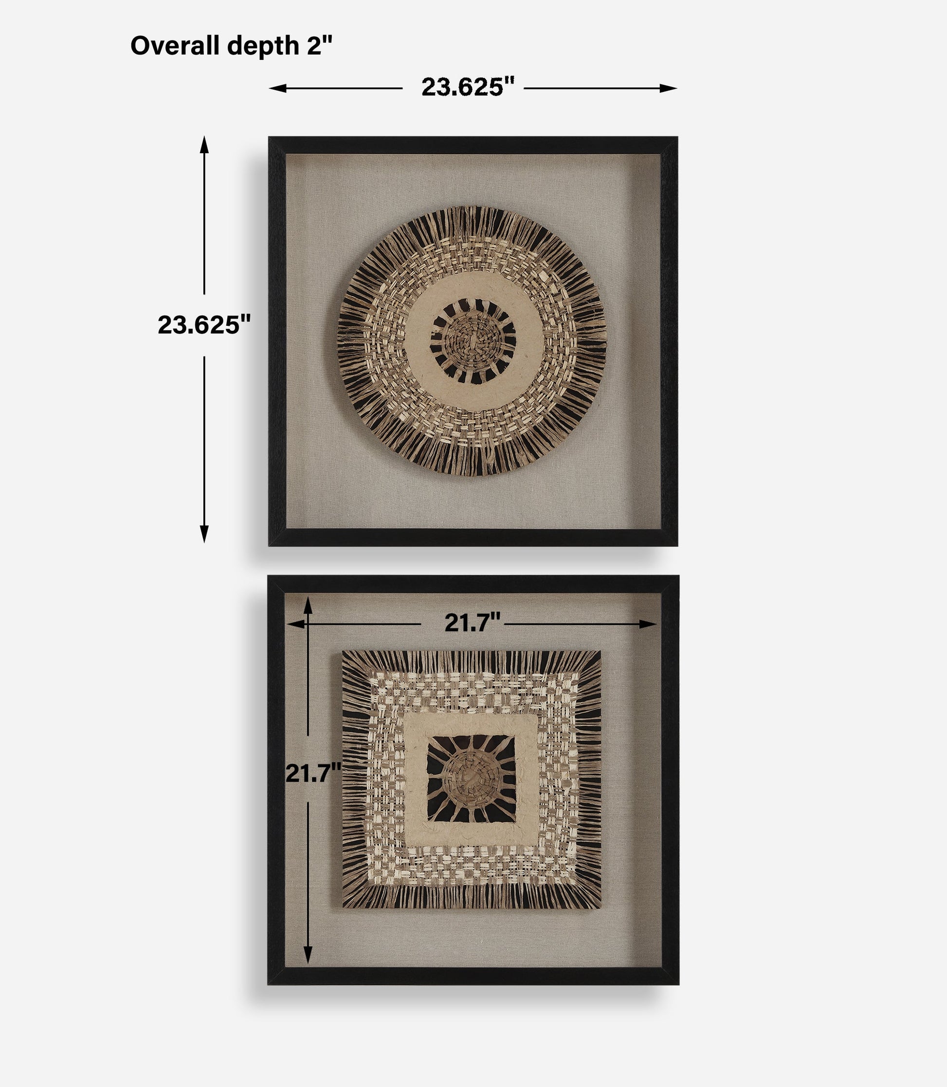 The Intertwine Shadow Boxes Are Woven Together Like An Heirloom Tapestry. Featuring Knit Paper Dyed In Natural Earth Tones Over A Beige Linen Backing And Framed In Satin Black Finished Pine Wood.