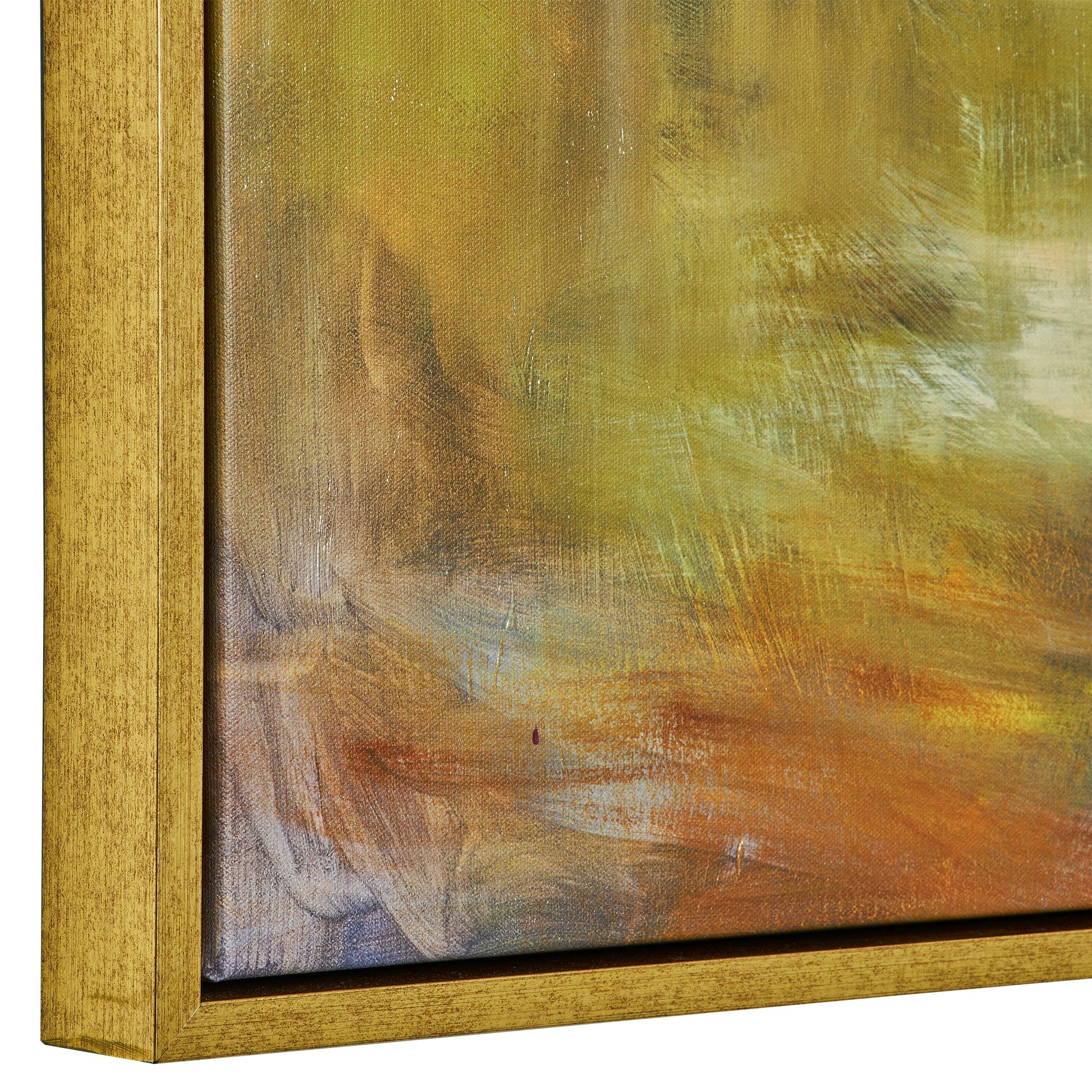 Giclee on canvas, this artwork features a stylized field of gold, tan, and olive with a sky of blue and accented by clouds of white. A solid wood gallery frame with gold finish completes the artwork. Each canvas is proudly handcrafted and printed in the USA. Artwork by Simon Addyman.Item Dimension (cm ) :