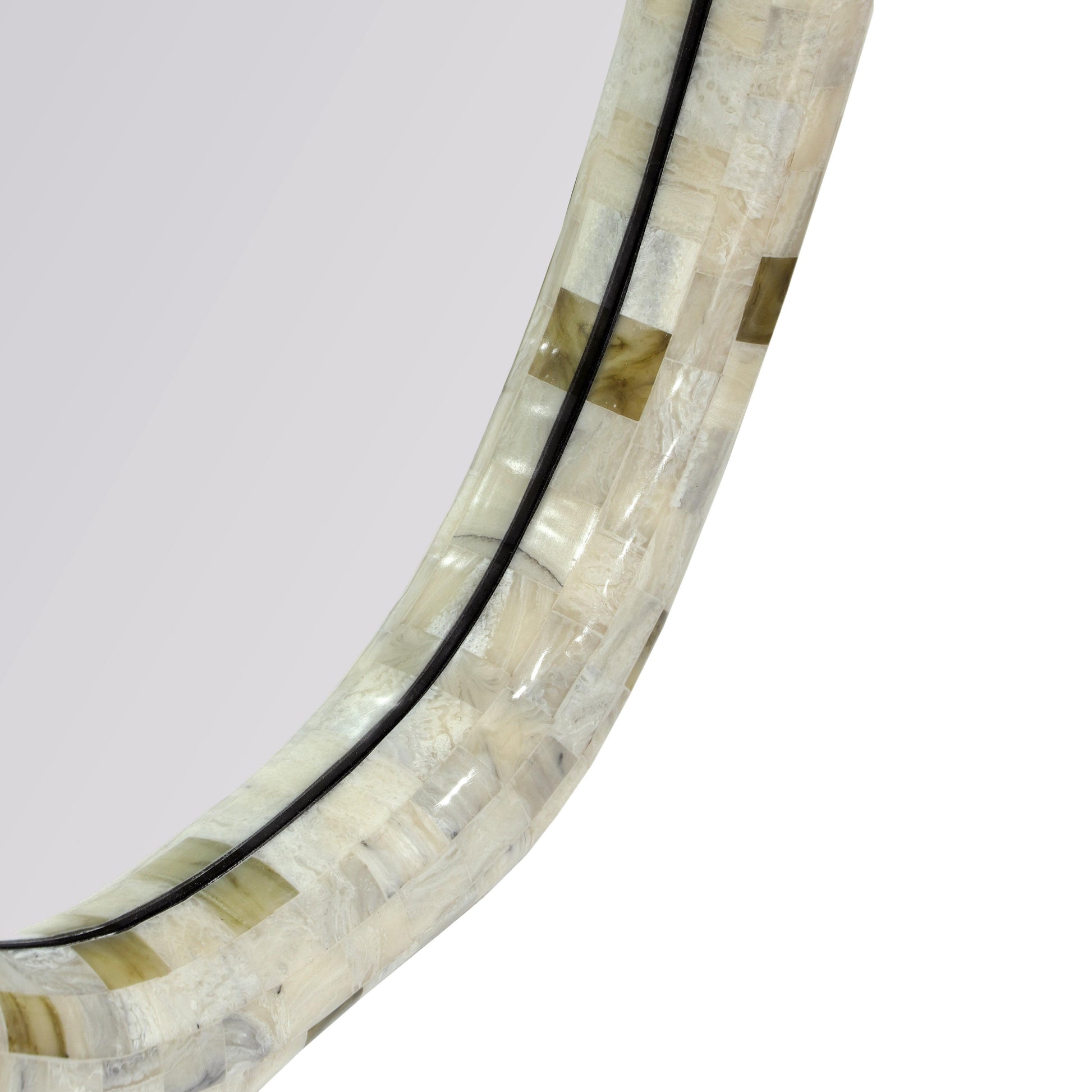 The Josephine Wall Mirror is one enchanting show-stopper. Crafted with a mesmerizing combination of glass and resin, its sculptural irregular shape brings a captivating touch to your space. With a seashell effect that glistens delicately, this mirror becomes a whimsical centerpiece that exudes elegance and artistic charm.