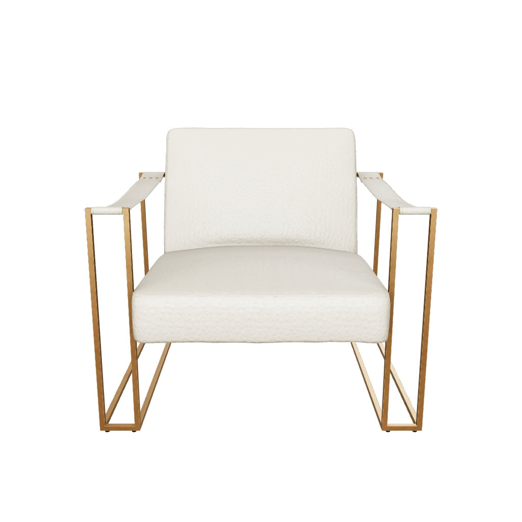 Less is so much more with the ultra-cool Kleemore accent chair. A mastery in open-concept living, this chair with sturdy metal base is enriched with thickly padded box cushions wrapped in a cream leather with ostrich patterned embossing. Leather armrests are a strapping touch.
