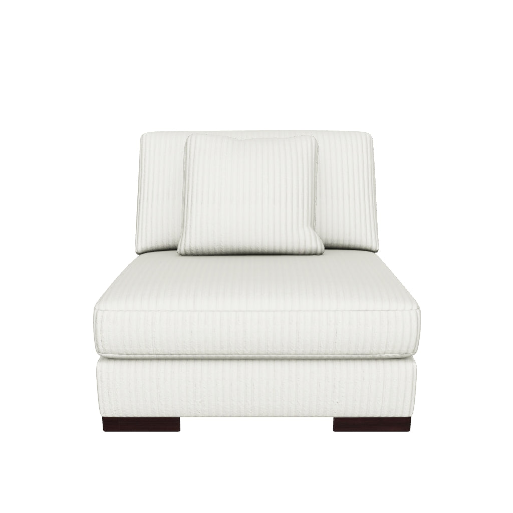 This armless chair is made with polyester upholstery. Pairs with other items in the series to make a sectional.