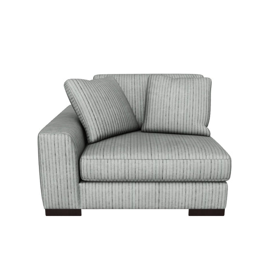 This left-arm facing corner chair is made with polyester upholstery. Pairs with other items in the series to make a sectional.