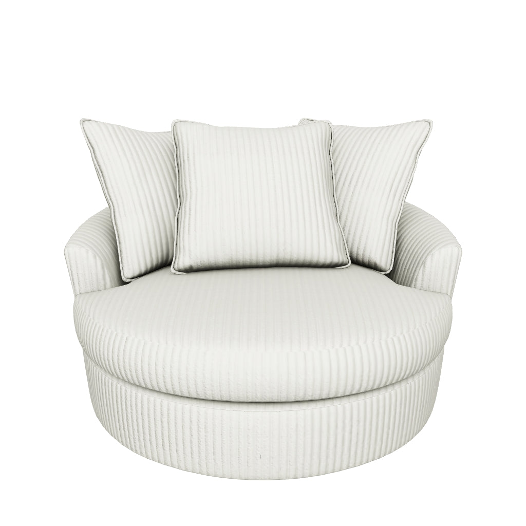 Plush and posh. Showcase your eye for on-trend texture with the statement-making cord upholstery of the Lindyn oversized swivel accent chair. Its stunningly soft fabric entices in an ivory hue, complementing contemporary color palettes. Sink into the spacious cushion and plan to stay a while—this cozy living room chair highlights your high-end approach to comfort and style.