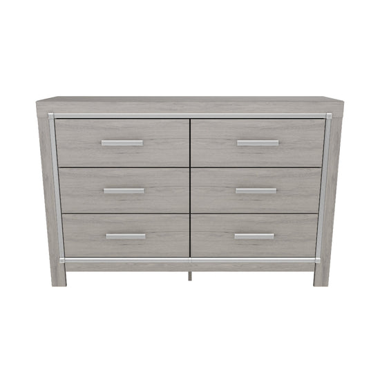 Reminiscent of Hollywood glamour of yesteryear, the Lodanna dresser interprets luxury in a decidedly modern way. A dazzling gray finish and faceted chrome-tone accents enhance the star power. Six smooth-gliding drawers provide enough storage to appease your inner diva.