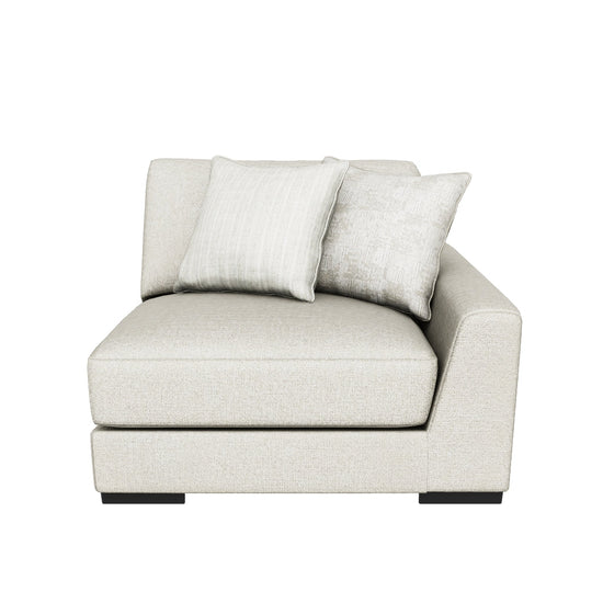 This right-arm facing corner chair is made with polyester upholstery. Fully finished on all sides, it pairs with other items in the series to make a modular sectional.