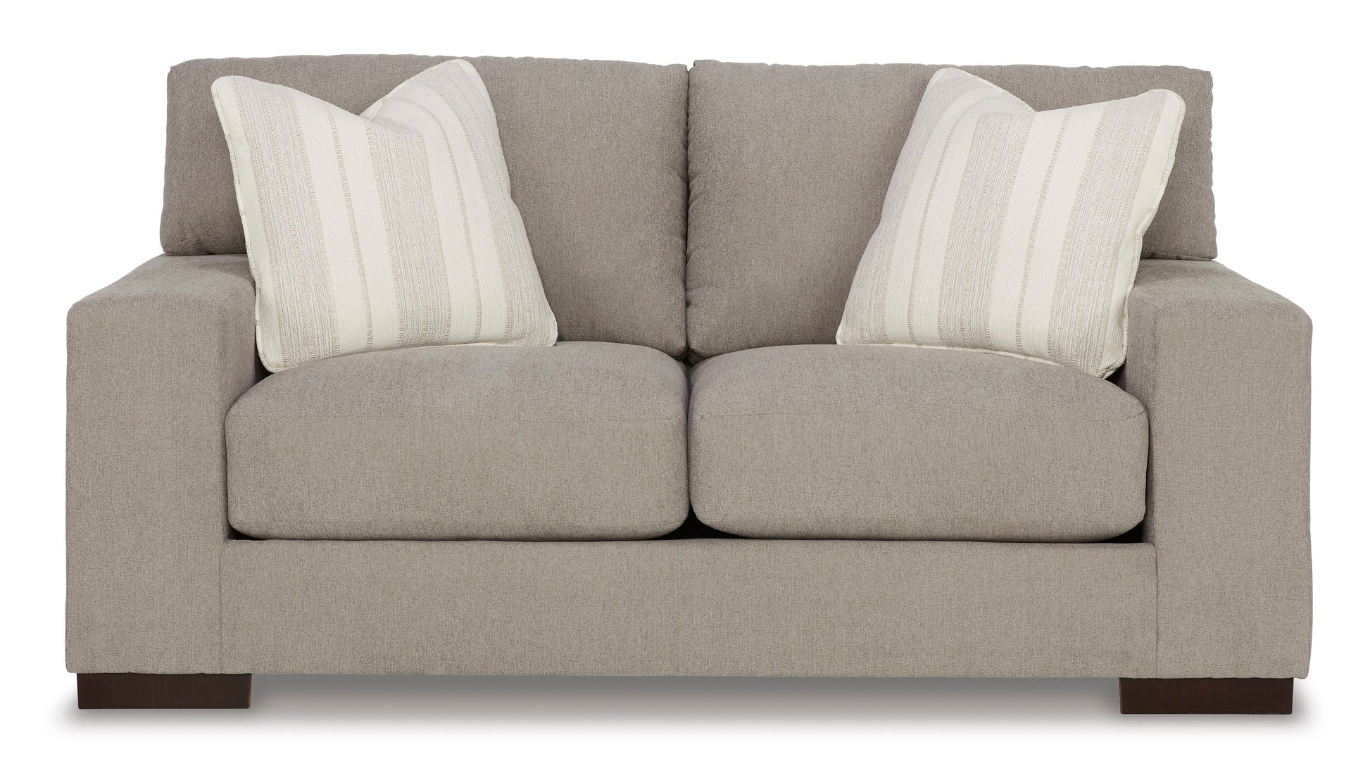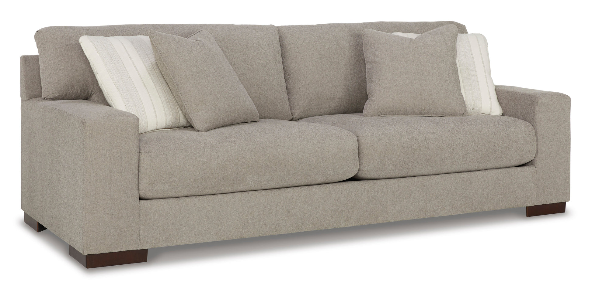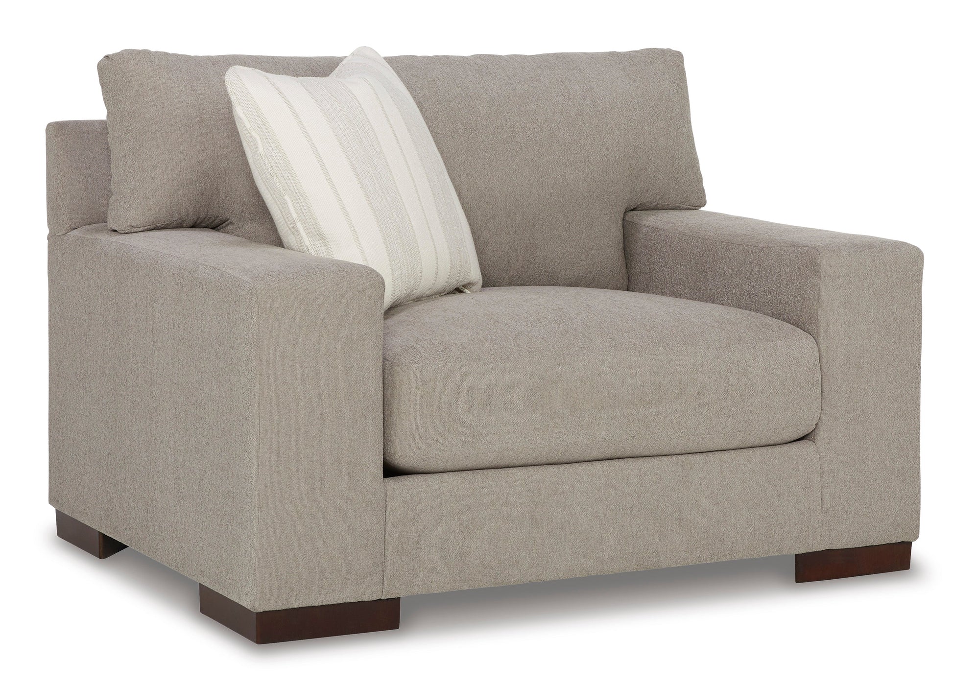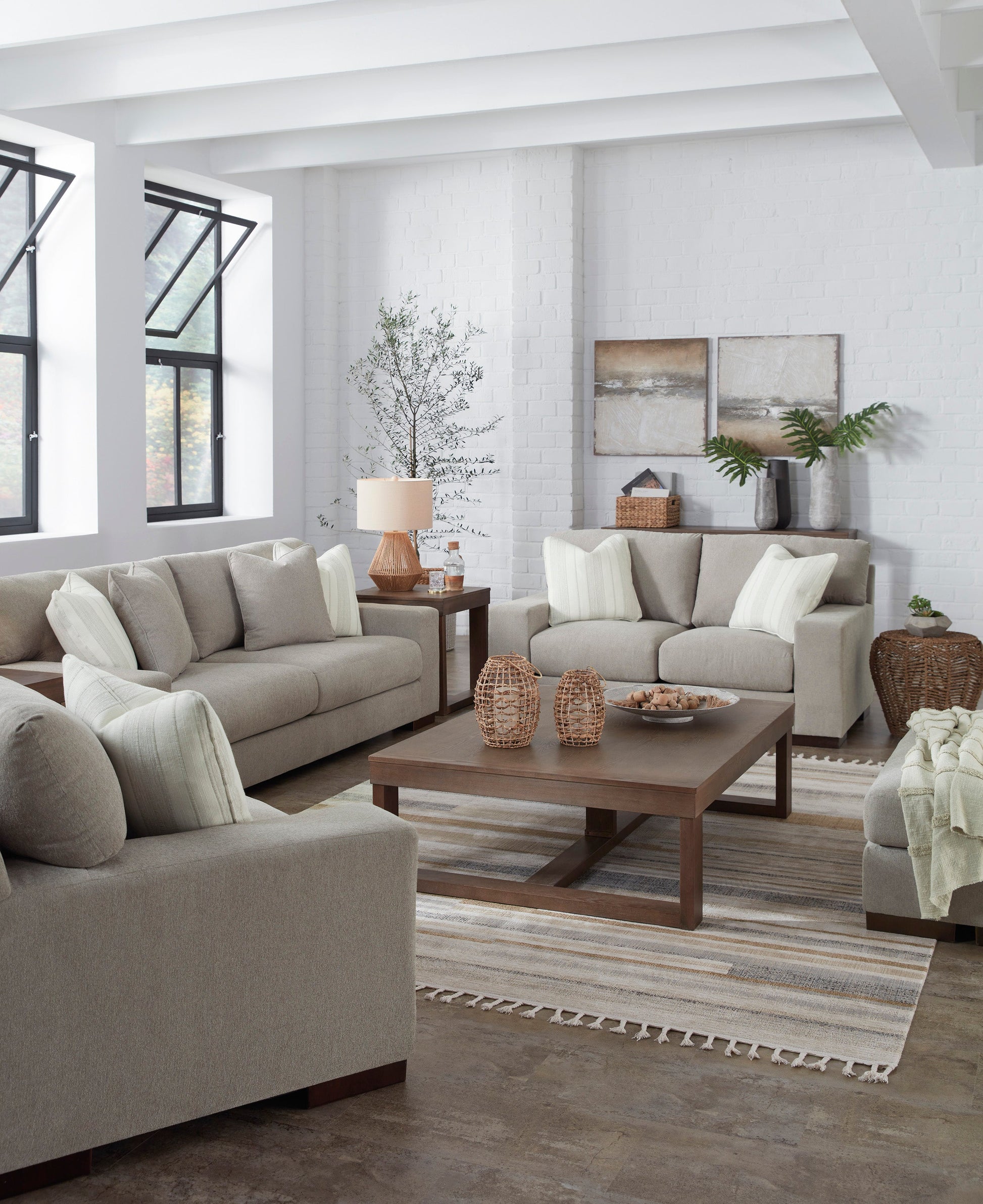 Product number Quantity Product name 5200423 1.00 Maggie Oversized Chair 5200435 1.00 Maggie Loveseat 5200438 1.00 Maggie Sofa Classic comfort gets a mod twist with this sofa. Its minimalistic approach and structured silhouette bring a clean-lined design element to your living room. Sink into the positively plush cushions while relaxing solo, or curl up with a glass of wine while hosting guests. And with neutral upholstery that suits both casual and contemporary spaces, this sofa offers endless style possibilities.
