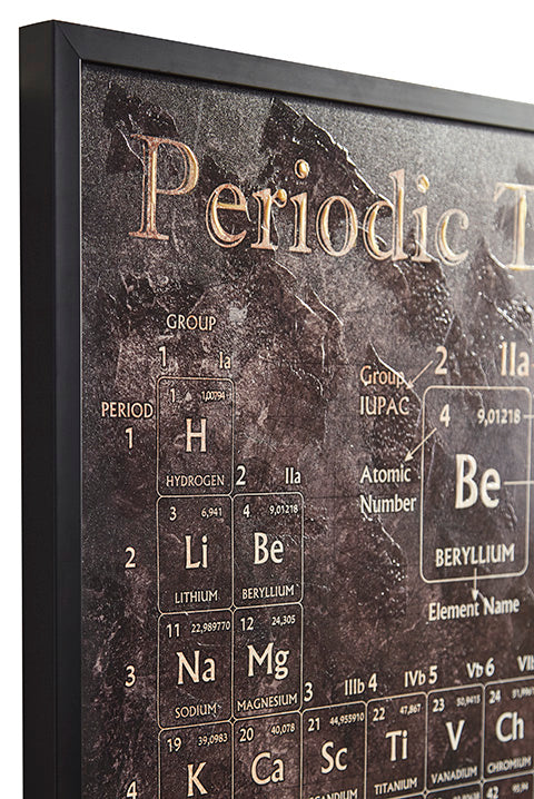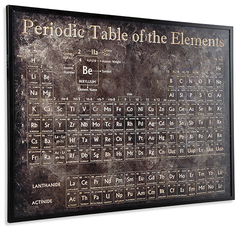 This black and white artwork is just the right formula for showcasing your brilliant sense of style. The gallery wrapped canvas of the periodic table features hand embellishing for an authentic look.
