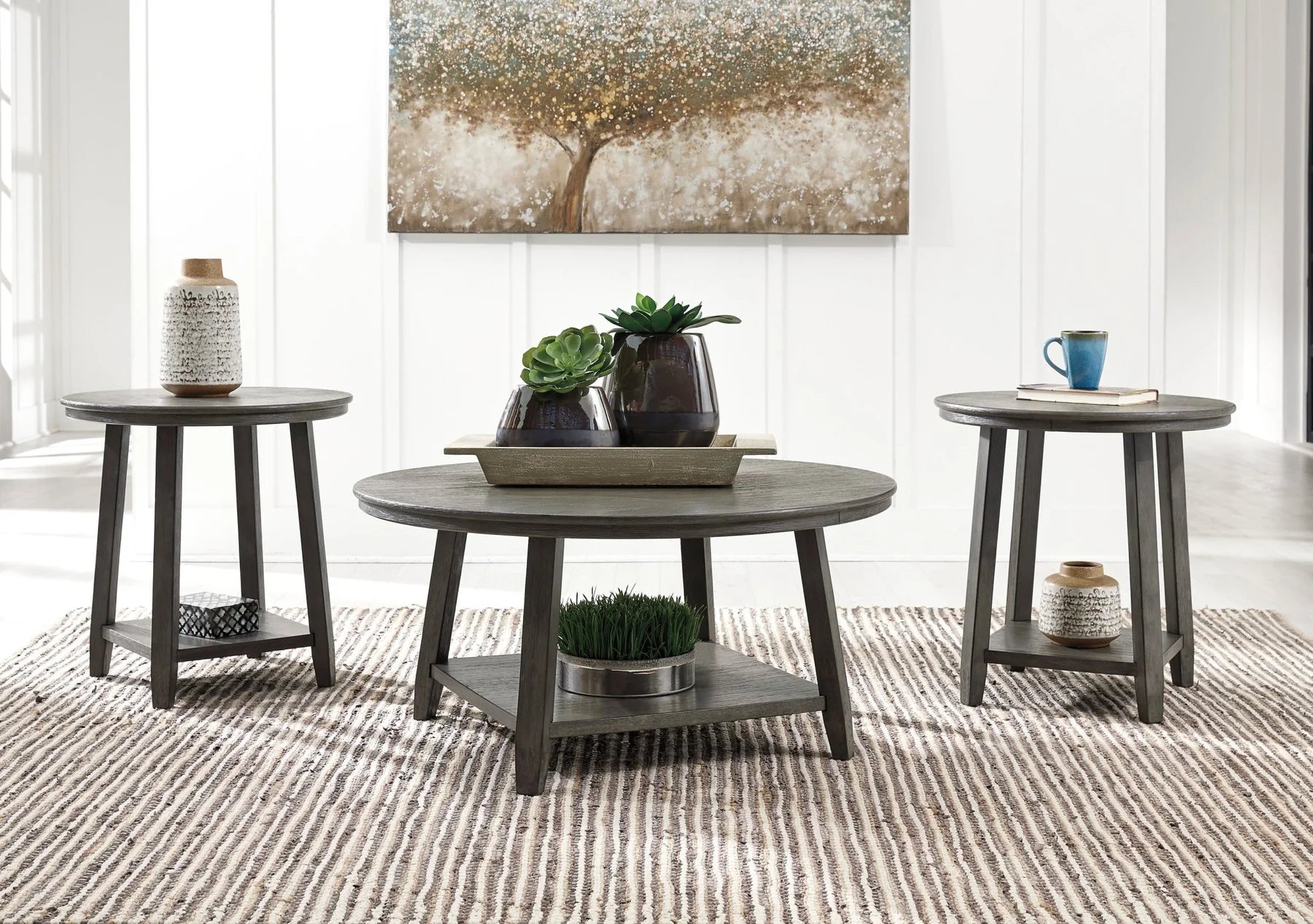 Item Color: GrayIncludes coffee table and 2 end tables