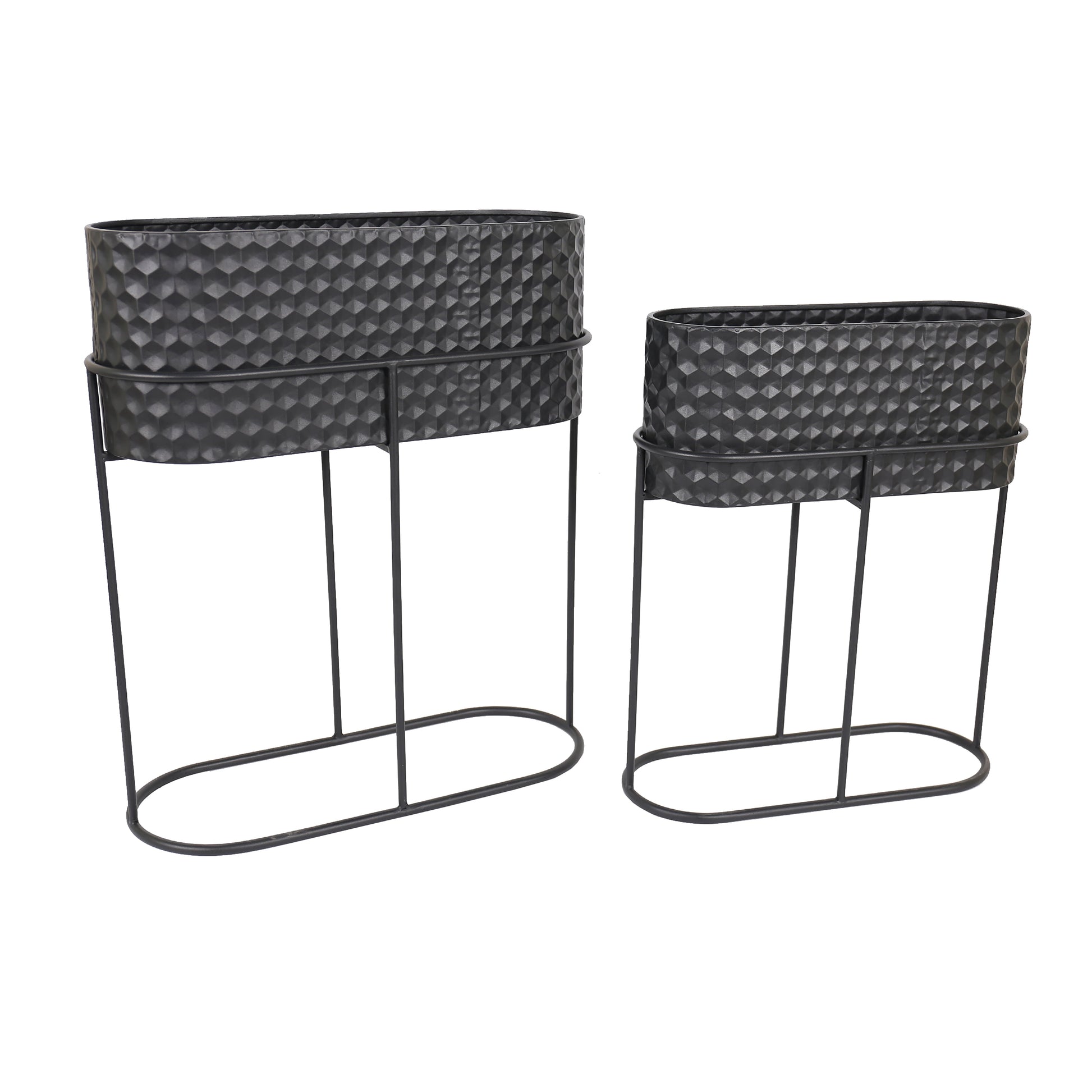 METAL, S/2 20/24" OVAL PLANTERS, BLACK